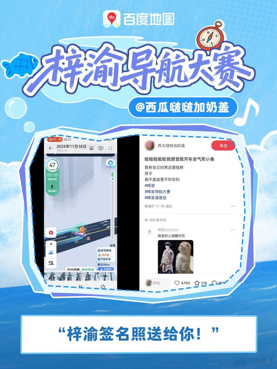 百度地图的送梓渝签名照活动,活动都结束了,网易还在下面留言她也要,那你要我也要极速小鱼