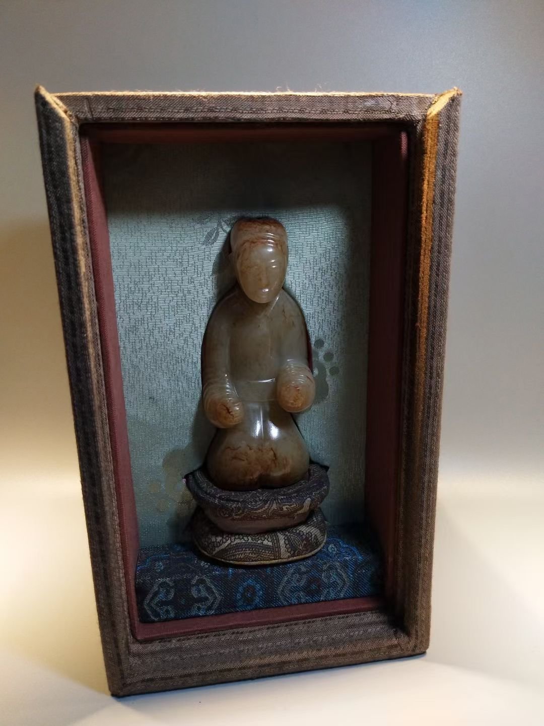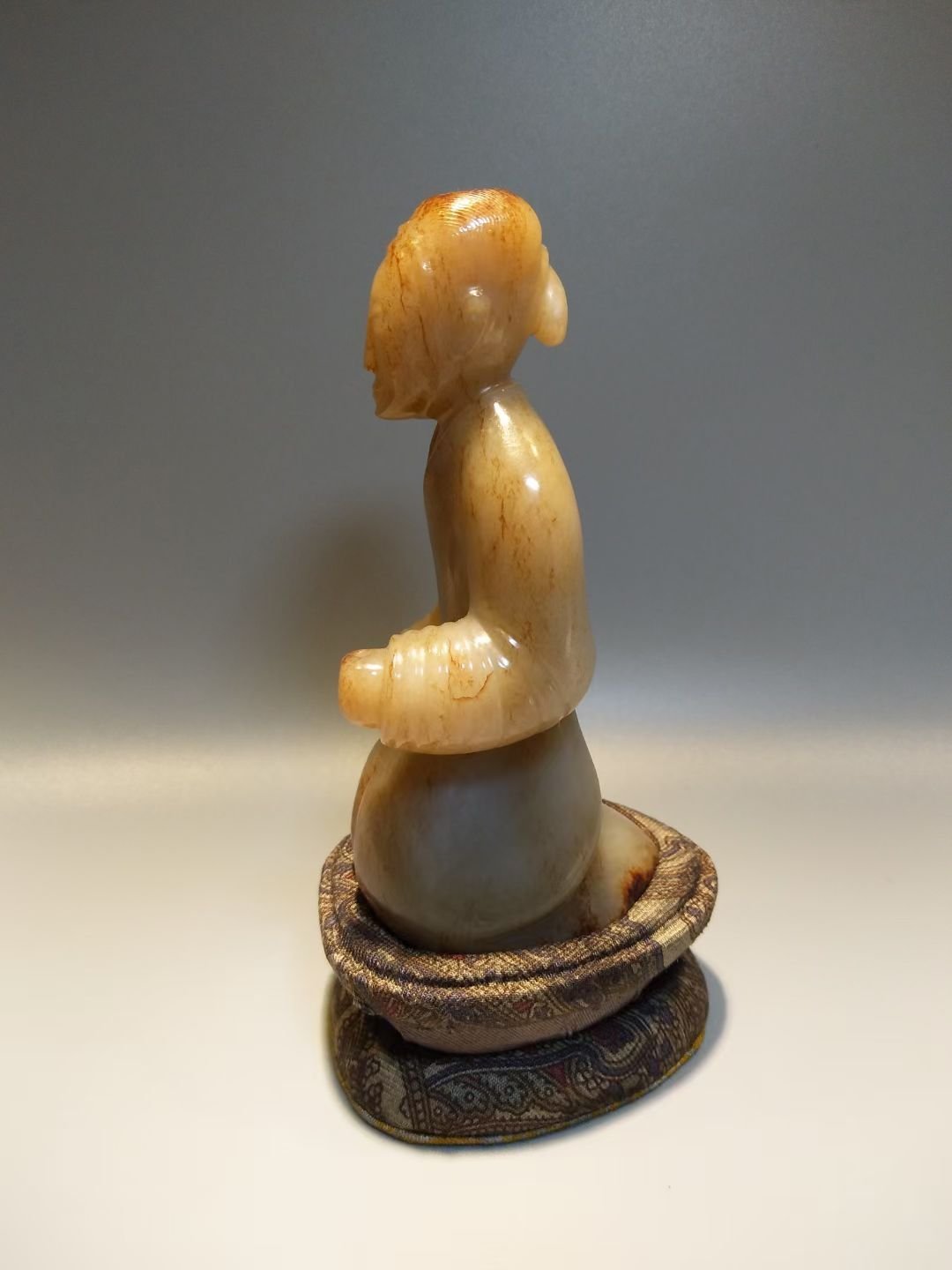 高古玉 汉代老妪圆雕作品,跪坐相,新疆和田白玉质,沁色年久,已成秋葵色,包浆滋润,细观特有美感…… 上海