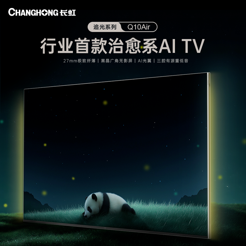 在今年年初的春季新品发布会上,长虹还发布了首款治愈系AITV-追光系列Q10Air电视,具备AI音色、智能检索、AI画质、AI交互、内容推荐等功能,可以提供3D立体全屋氛围光场,以及全场景陪伴和人机互动功能。