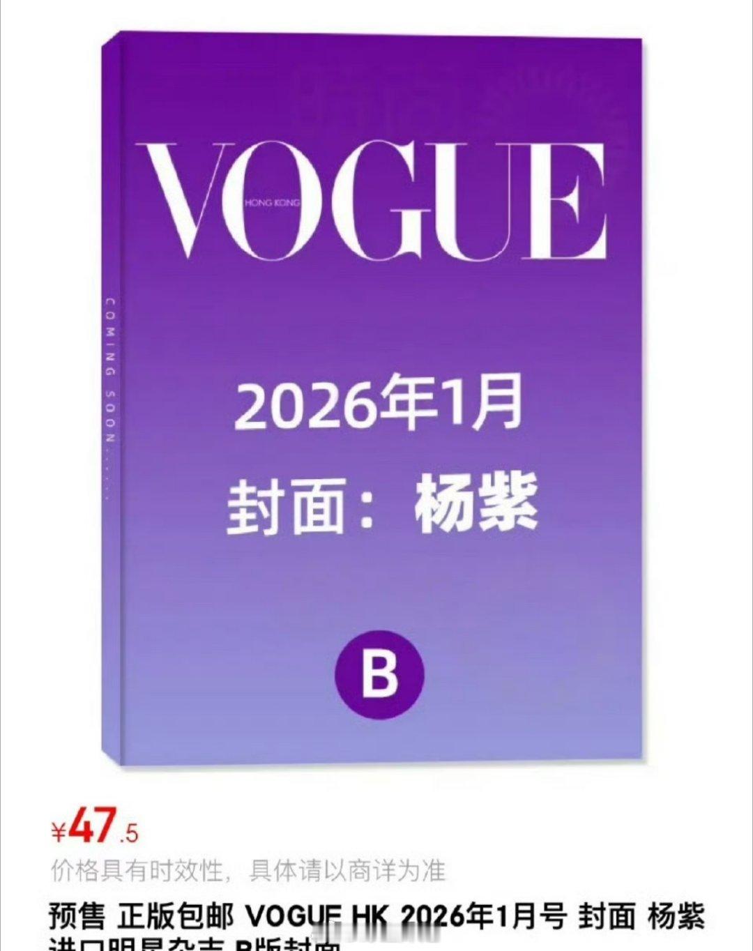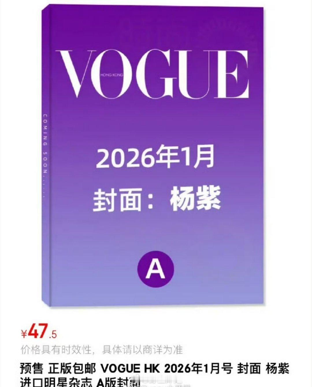 哇哦,杨紫的港版vogue已经开始预售了,拍的是2026年一月份的封面杂志啊,好久没看到了,这预售销量感觉都能爆