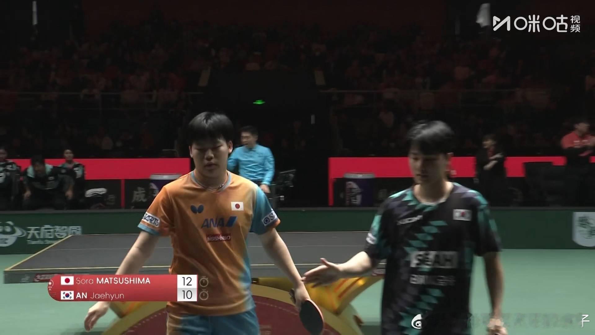 松岛辉空3比0安宰贤(9,6,10)第四盘:筱塚大登户上隼辅VS吴晙成安宰贤日本