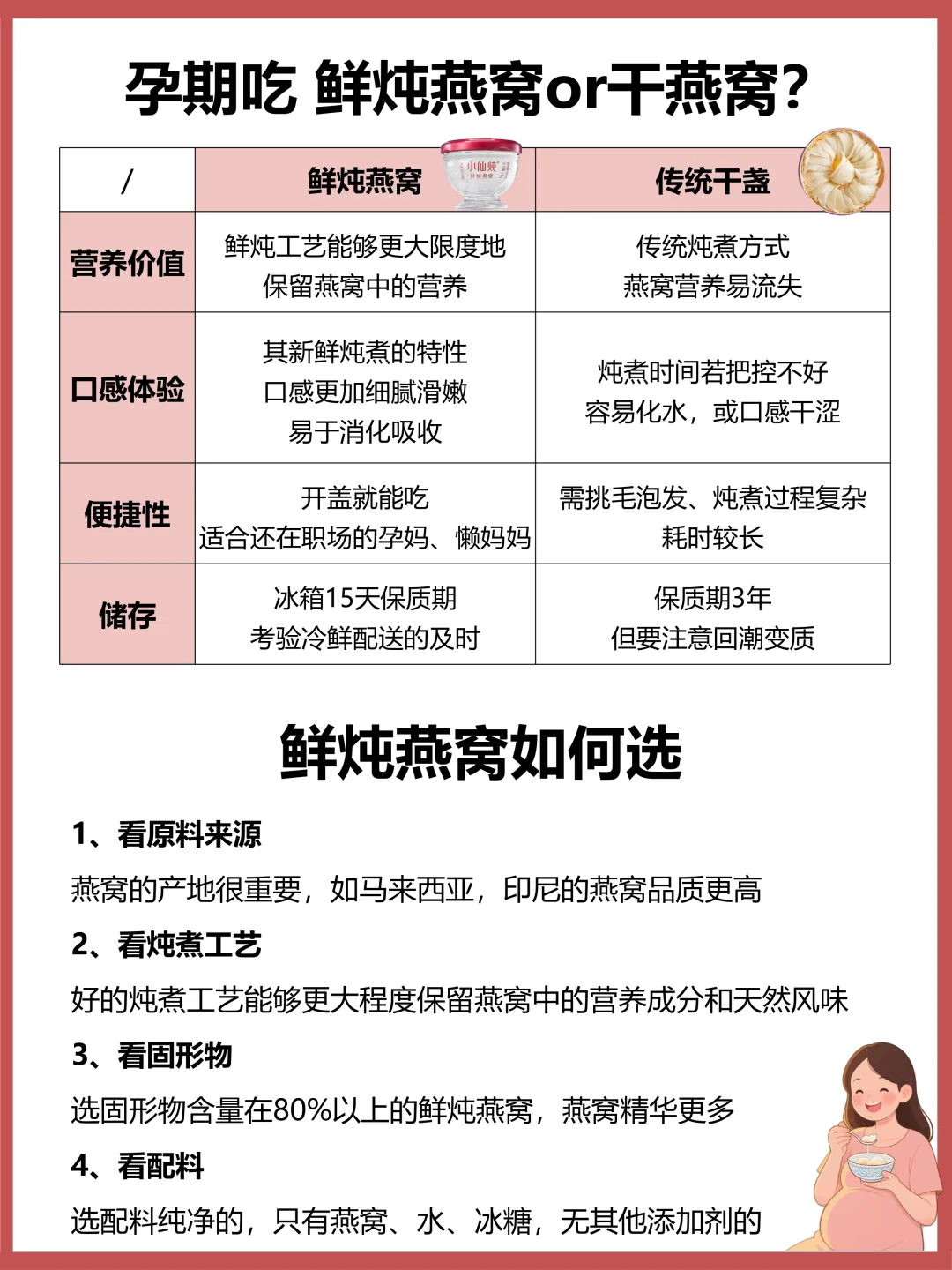 ✔选鲜炖燕窝不选干燕窝,专业炖煮技术营养更能保证,同时省去自己炖煮的麻烦,孕妈更好坚持