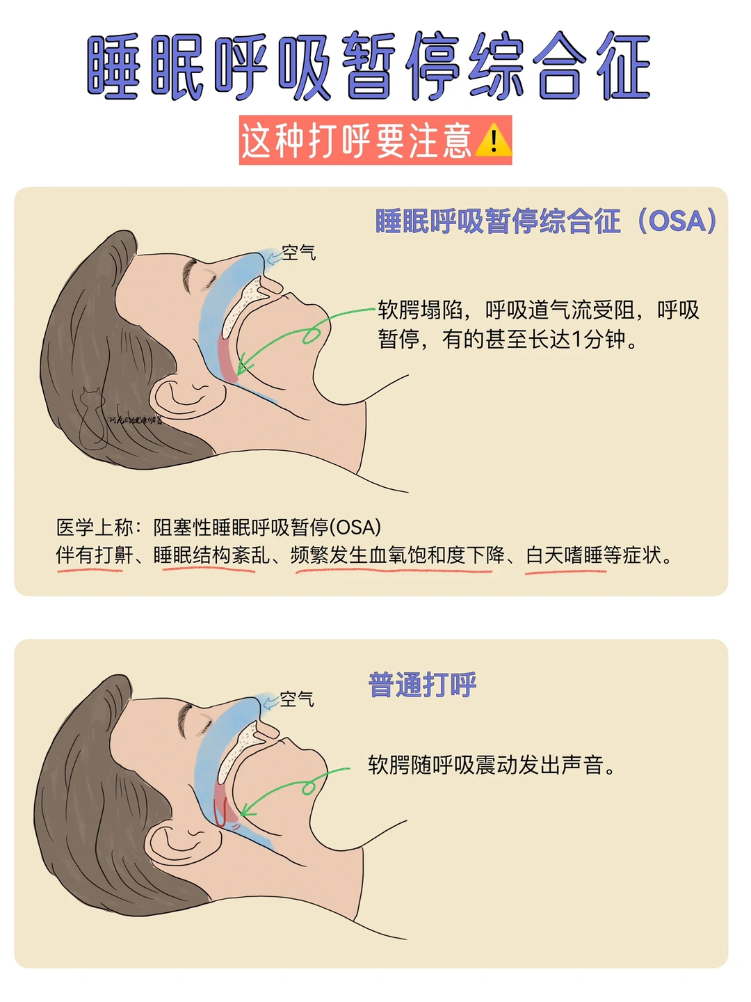 ❌❌这是误区!千万别以为打呼噜就等于睡得香,打呼有很多种原因,表现出的呼噜声也各不相同