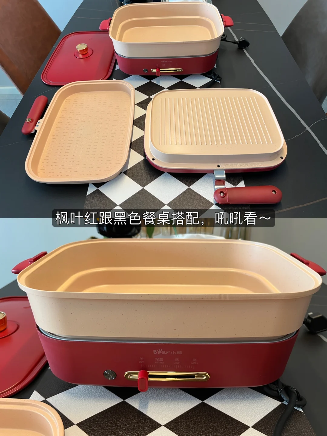 做为老粉,小熊家的厨房小家电我真的是见一个爱一个,用一个赞一个!这个小熊家宴锅是我过年期间才入手的,枫叶红的颜色跟我家黑色餐桌配起来好好看~