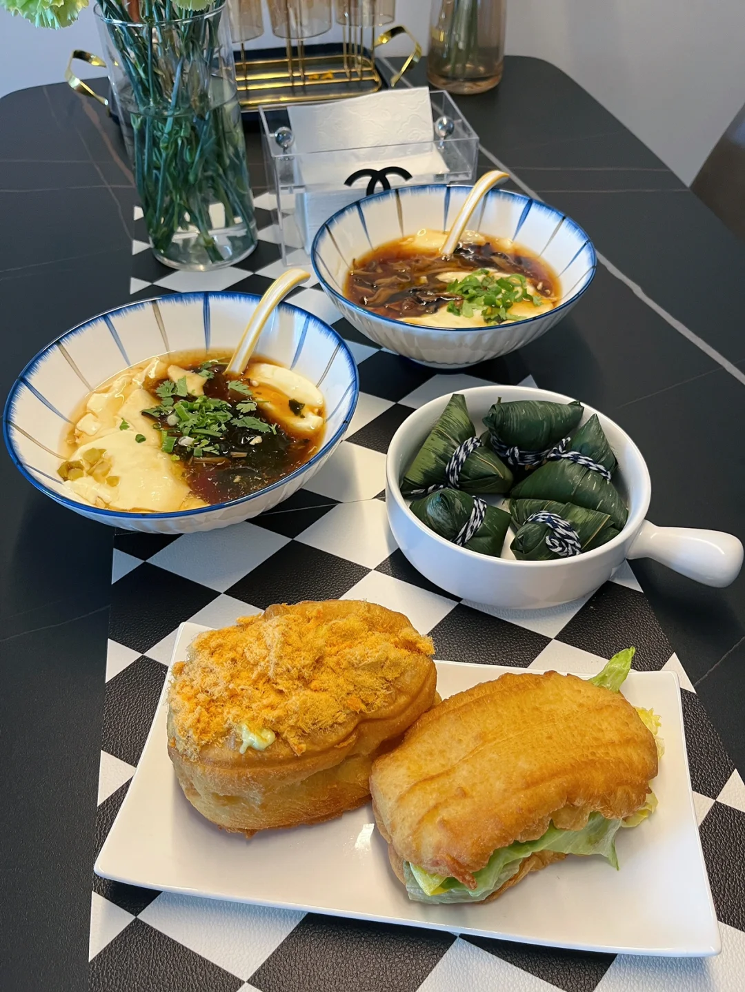 馋油条好久了今天必须安排上~还有昨天下午包的蜜枣粽子真的是好迷你啊两口一个~正吃着饭有人敲门,开门迎来一束花,哈哈我忘了今天是生日,我估计老公还定了蛋糕一会也会送来😂