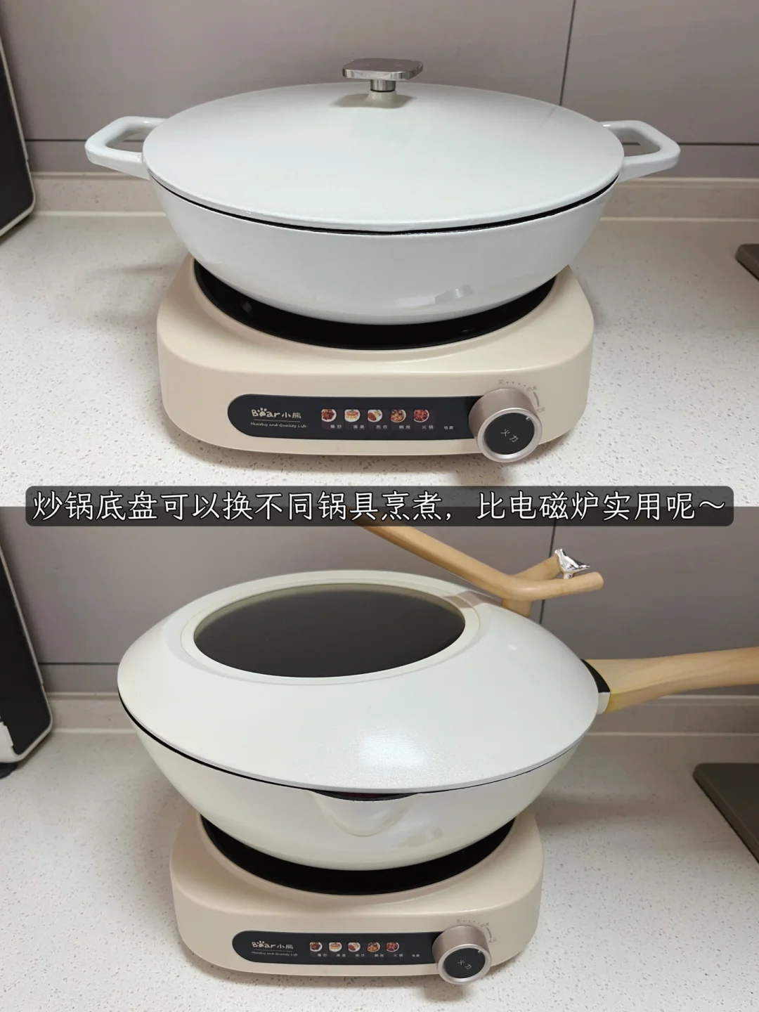 能爆炒的电锅我可是太喜欢了~今天用的小熊分体爆炒锅深得我心,蒸、煮、煎、爆炒等家常菜都能搞定,而且还能代替电磁炉,除了配套的不粘锅以外,我家里的炒锅,珐琅锅,砂锅,玻璃锅,这些都能适用,日常使用频率也很高~尤其喜欢分体设计,好清洗,再也不用担心进水烧坏的问题了~