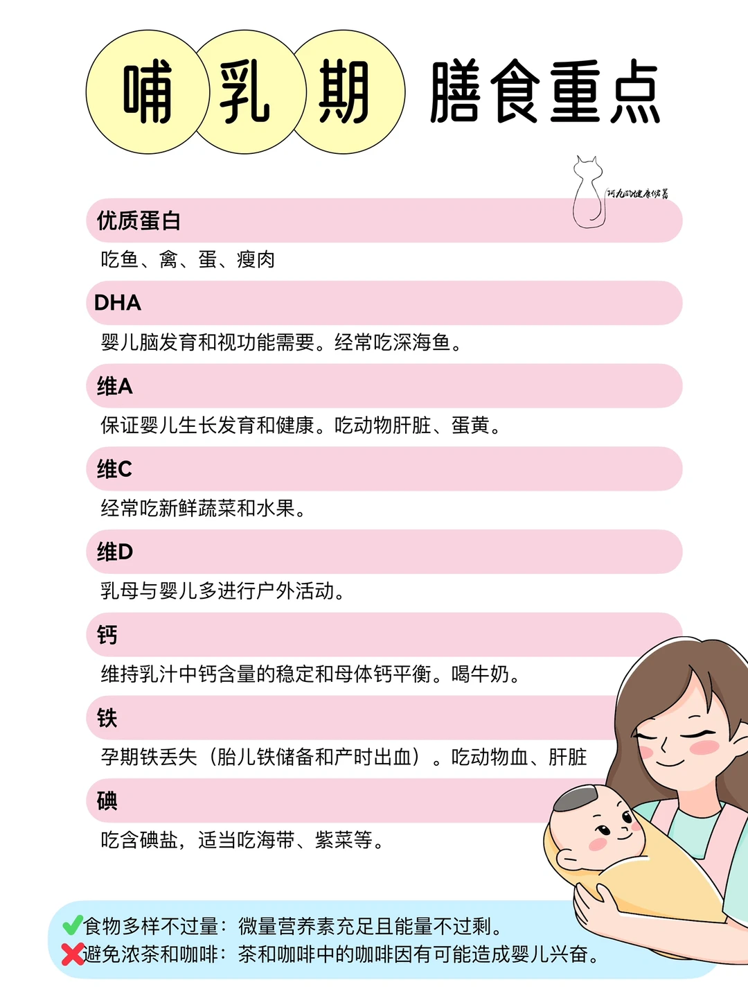 [彩虹R]哺乳期,一方面要促进泌乳,另一方面要保证乳汁营养密度。重点的营养放在图5。