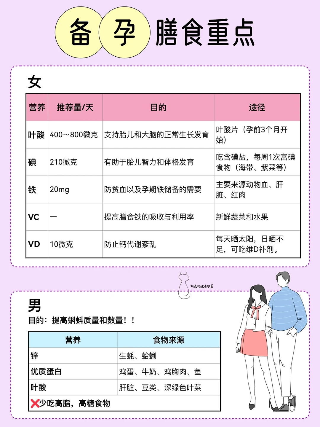 [彩虹R]首先是备孕时间,最好是3个月以上,因为精子和卵子的成熟周期在3个月左右。