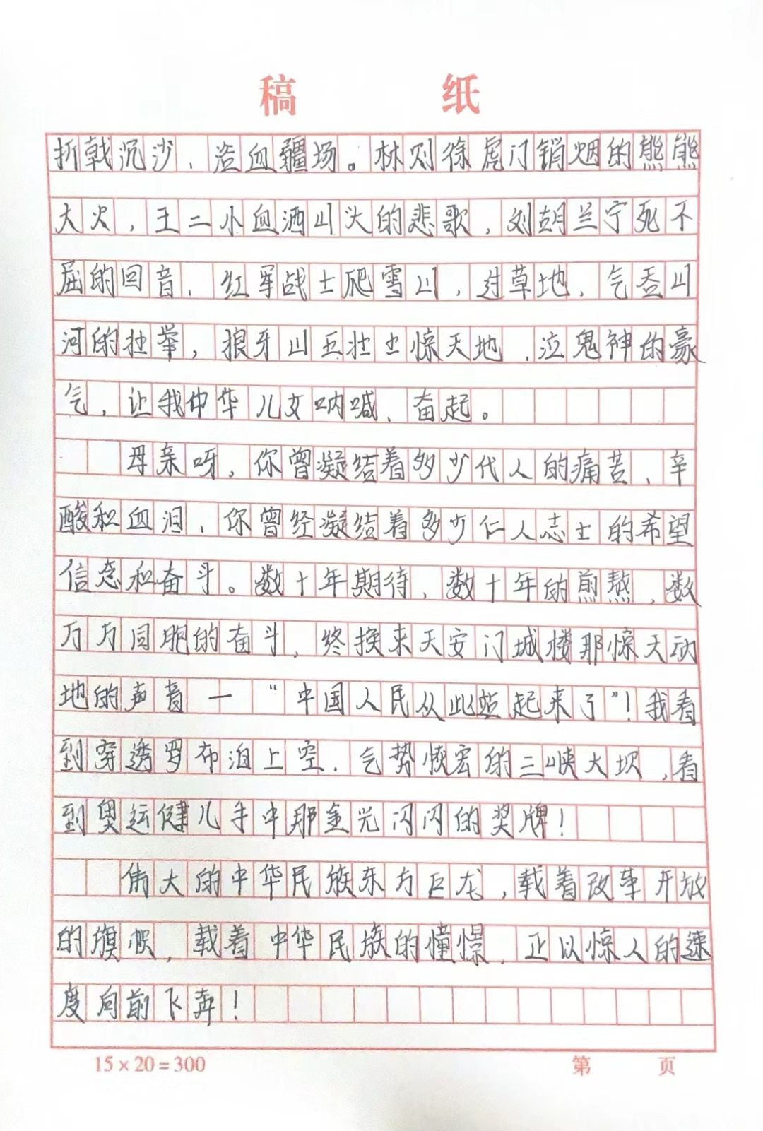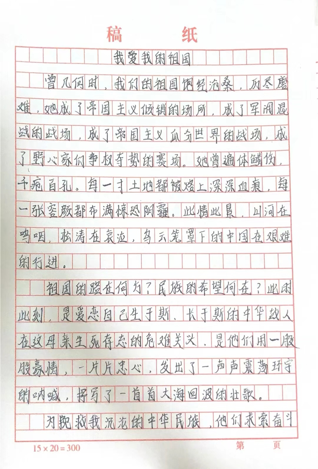 今天这幅AI绘画作品的原型来自延庆区第二中学九年级(7)班乔周佳慧的书信作品《我爱我的祖国》。