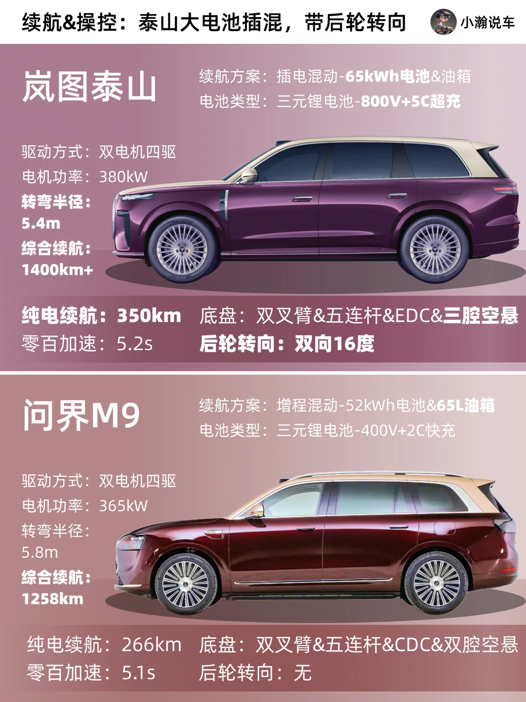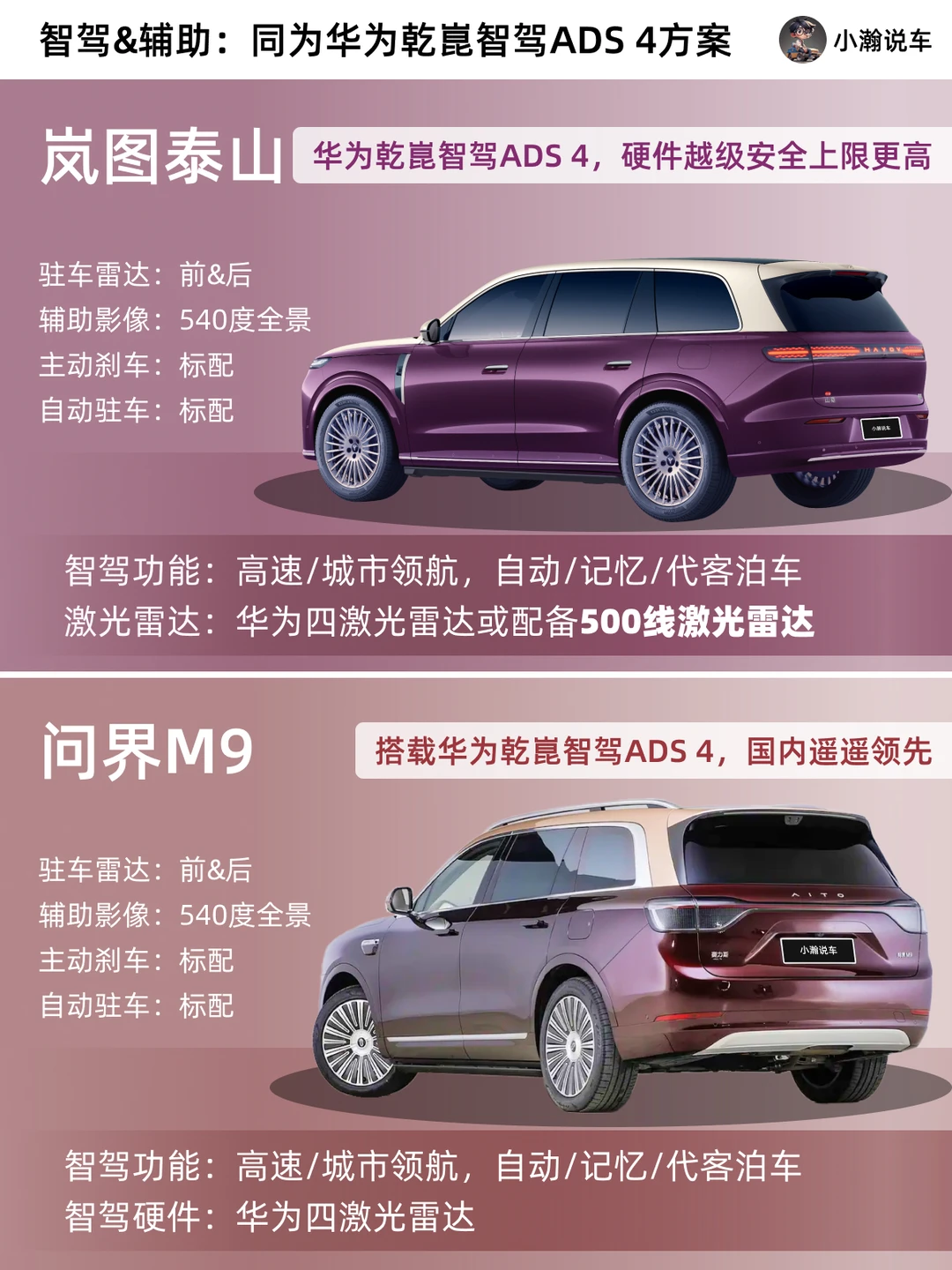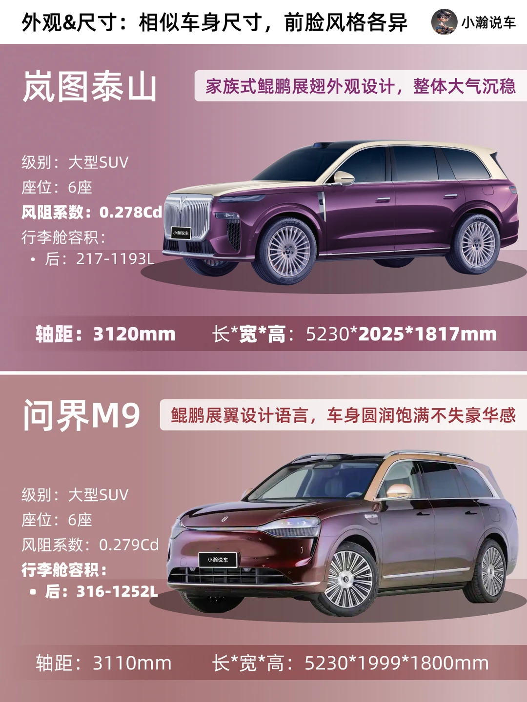 华系豪华旗舰SUV现在太热闹了!之前,问界M9一直稳坐“标杆宝座”,没想到岚图泰山一亮相就带着满配buff登场,中式科技豪华+硬核配置直接拉满,让不少同学都犯了选择困难症~咱们今天从实际用车场景出发,客观对比两款车的核心差异,帮你理清思路!