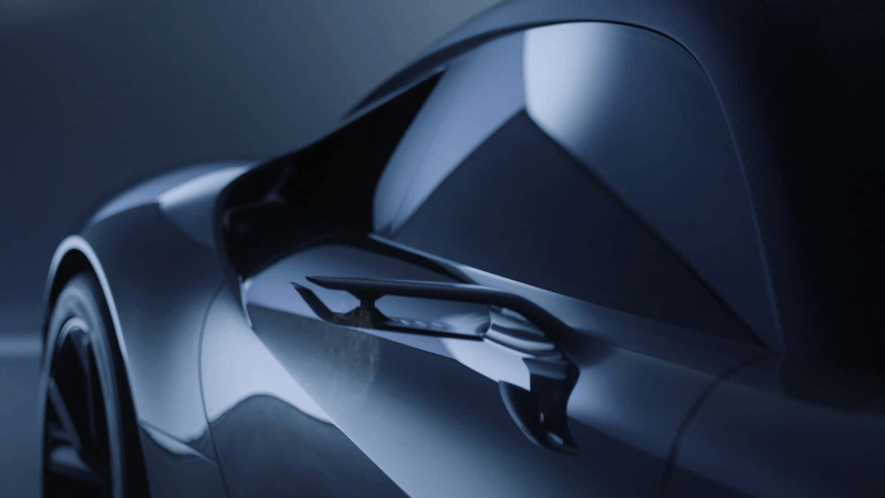 侧面来看,新车整体线条低矮而运动,采用跑车一贯的双门设计,车顶翼状结构将气流导向主动式后扰流板,优化空气动力学性能。此外,新车并未搭载传统的后视镜,而是采用了电子后视镜。同时,新车还搭载大尺寸运动轮毂,配备黄色刹车卡钳。