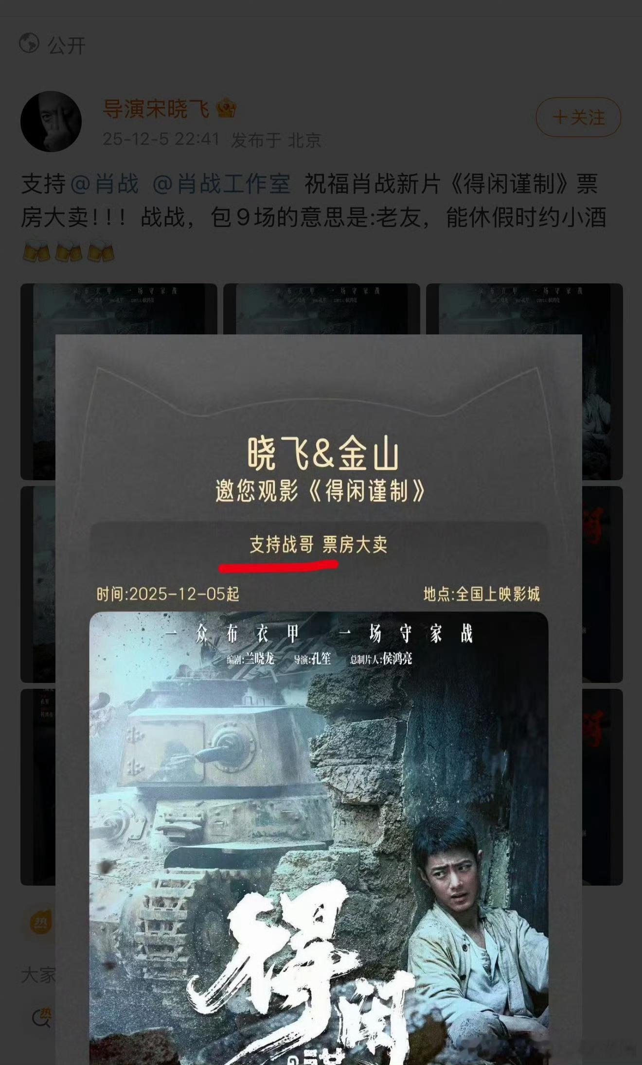 战哥!骄阳伴我导演宋晓飞给肖战《得闲谨制》包场啦!老友,休假时约小酒