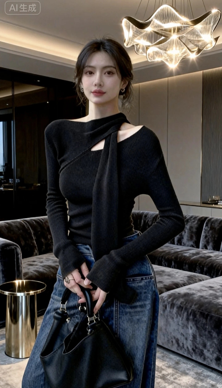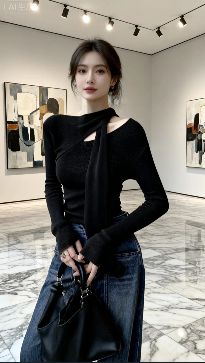 这套穿搭走的是简约修身+休闲日常风格,核心亮点是版型和配色的适配:•上装: