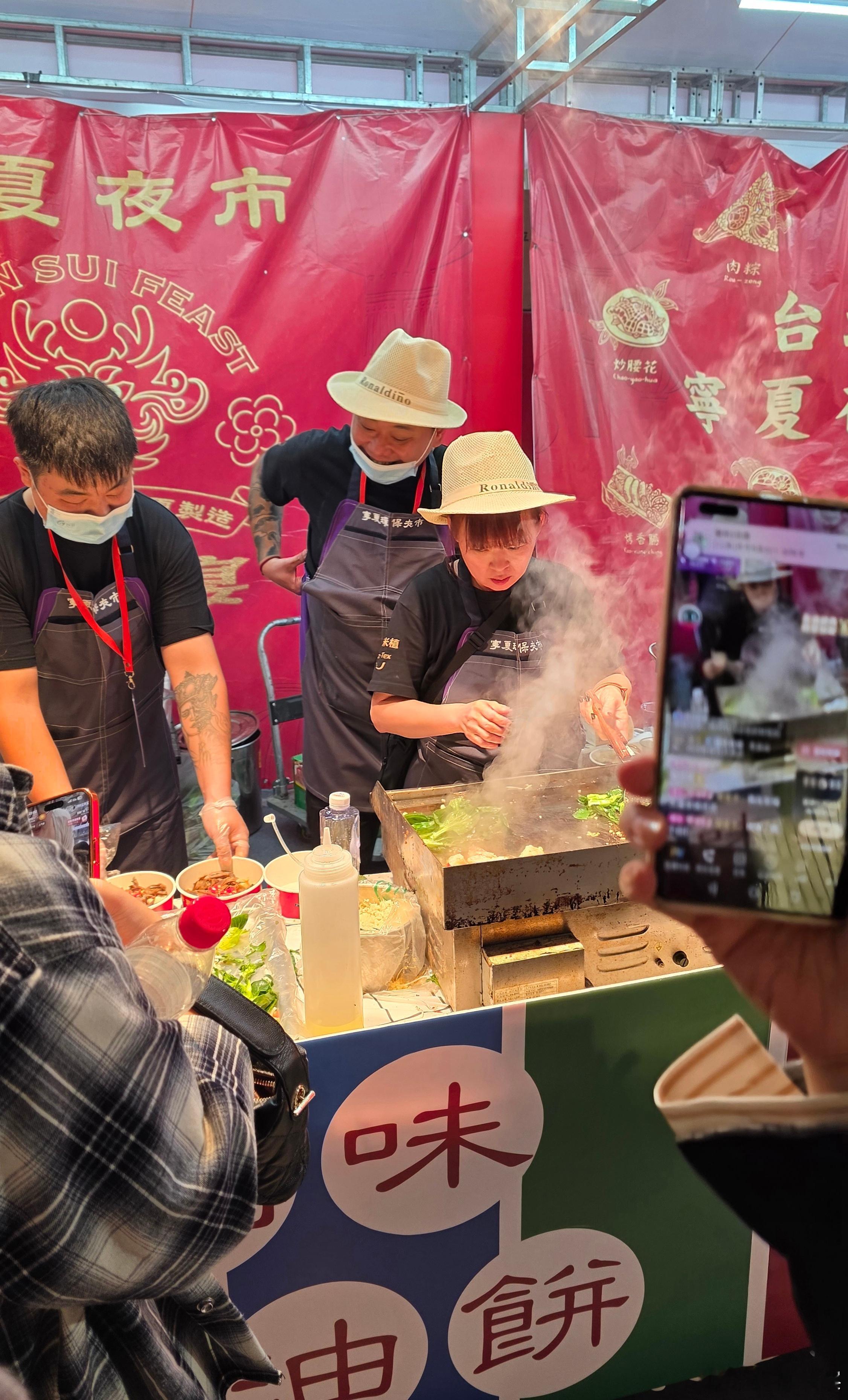 这条街今晚被台湾味道承包了。蚵仔煎在铁板上滋啦作响,林哥站在人群里突然挪不动脚了