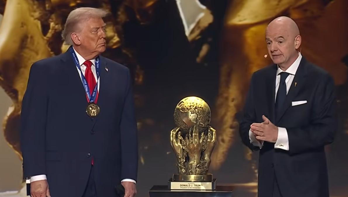 在世界杯小组抽签之前,特朗普却首先获得了一个奖牌,自己挂上了。 特朗普上台领取国际足联和平奖! 这个奖牌挂在他胸前觉得也太搞笑了吧! 美加墨三国领导人抽出各自国家,美加墨分别进入D组B组A组,这么会抽呀! 太搞笑了,如果抽到强队会不会又重抽呢?