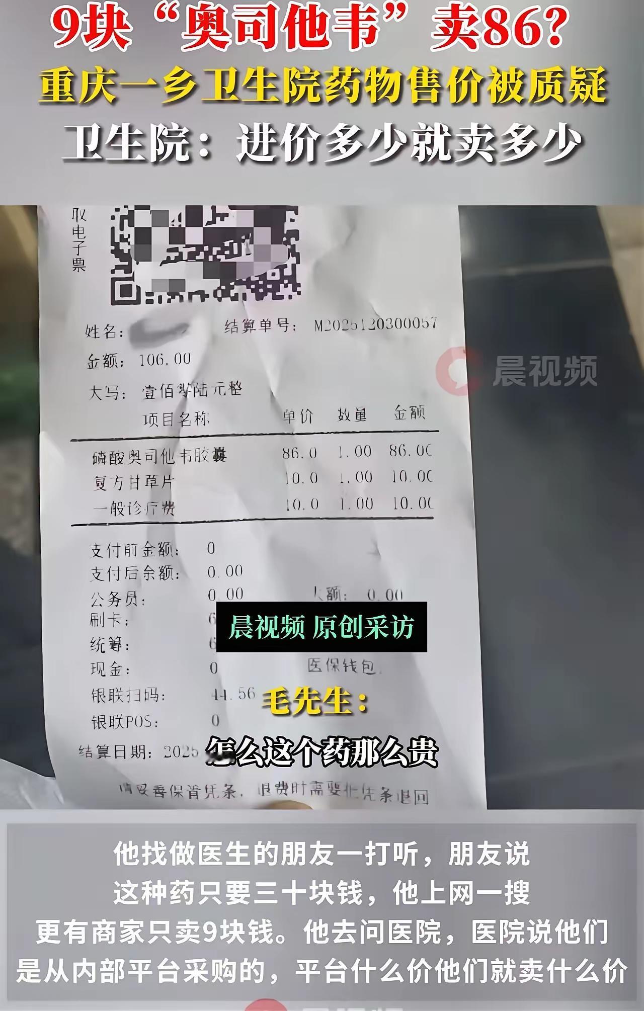 同药价差77元,医院86药店9元,这道“民生算术题”该咋解? 一位17岁女生甲流就医,一盒10粒装的磷酸奥司他韦卫生院卖86元,同款药药店仅售9元,77元的差价瞬间戳中了无数家庭的就医消费痛点,也让“看病贵”的讨论再次冲上热搜。 有人质疑医院“坐地起价”,可院方直言“药品零加成”,一分钱没多赚;药店喊着“没亏本”,却也说不透低价的底气在哪。这中间的差价,其实藏着普通人看不懂的药品流通逻辑。 首先要明确的是,医院药品采购走的是集中招标采购渠道,看似透明,却要承担药品储存、冷链运输、药师专业管理等隐性成本。尤其是基层卫生院,药品采购量远不及大型连锁药店,分摊到单盒药上的物流和管理成本自然更高。而连锁药店能拿到9元的低价,往往是因为大批量采购的议价优势,加上部分药企为抢占零售市场,会给出定向的供货折扣,甚至会用低价常用药引流,靠其他高毛利药品盈利。 更值得深思的是,这77元差价的争议背后,是普通人对“医疗消费公平性”的朴素期待。不少网友吐槽“去医院看病,药钱比诊疗费还贵”,也有人感慨“药店买药便宜,可没医生诊断又不敢乱用药”。一位宝妈留言说:“孩子发烧去医院,光一盒奥司他韦就花了大几十,网上同款才几块钱,不是心疼钱,是怕花了冤枉钱。” 其实,随着医药分开改革推进,医院药品零加成早已普及,真正的差价症结不在“加价”,而在流通环节的成本差异和渠道壁垒。相关部门也在打通药品采购“最后一公里”,比如扩大医保定点药店的覆盖范围,让患者能凭处方去药店买低价药,既享受专业诊疗,又能省下药费。 这道77元的民生算术题,没有标准答案,却在提醒我们:医疗消费的安心感,既要靠医院的透明化管理,也要靠药品流通的降本增效,更要让普通人能在“专业诊疗”和“平价用药”之间,找到最贴心的平衡。 你有没有遇到过医院和药店药品价差悬殊的情况?你是会选择医院开药还是去药店自行购买?不妨在评论区聊聊你的经历和看法!
