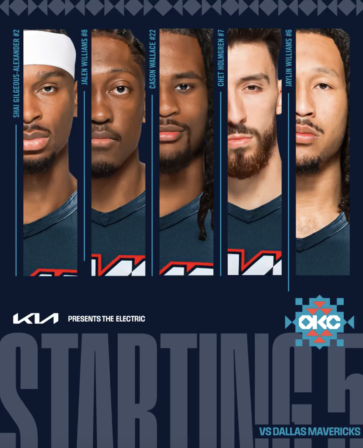 雷霆今日首发:SGA、杰伦威、华莱士、切特、杰林威