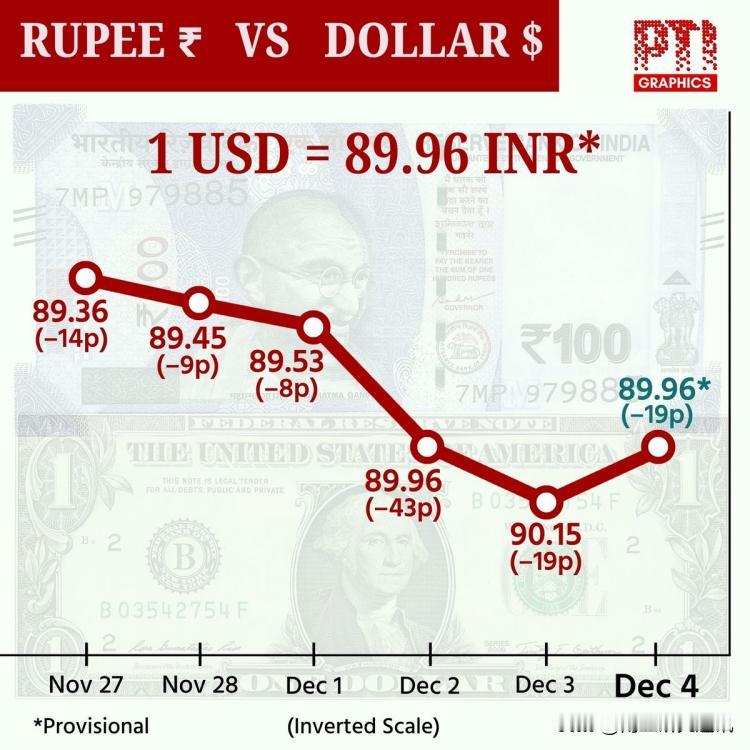路透社12月4日报道,印卢比对美元汇率跌至历史新低,金融界担忧美印贸易走弱进一步