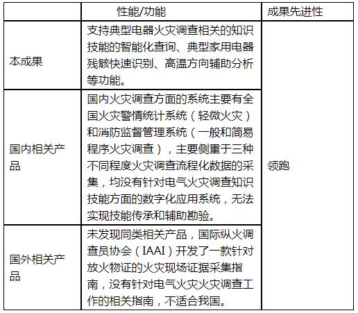 电器火灾调查指南系统软件与国内外同类先进产品比较如下: