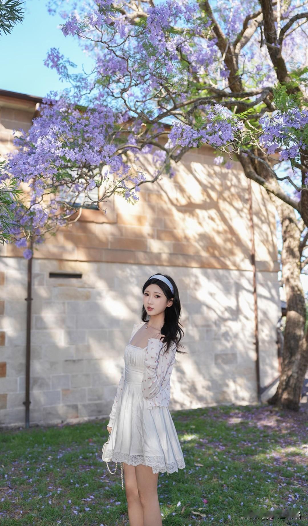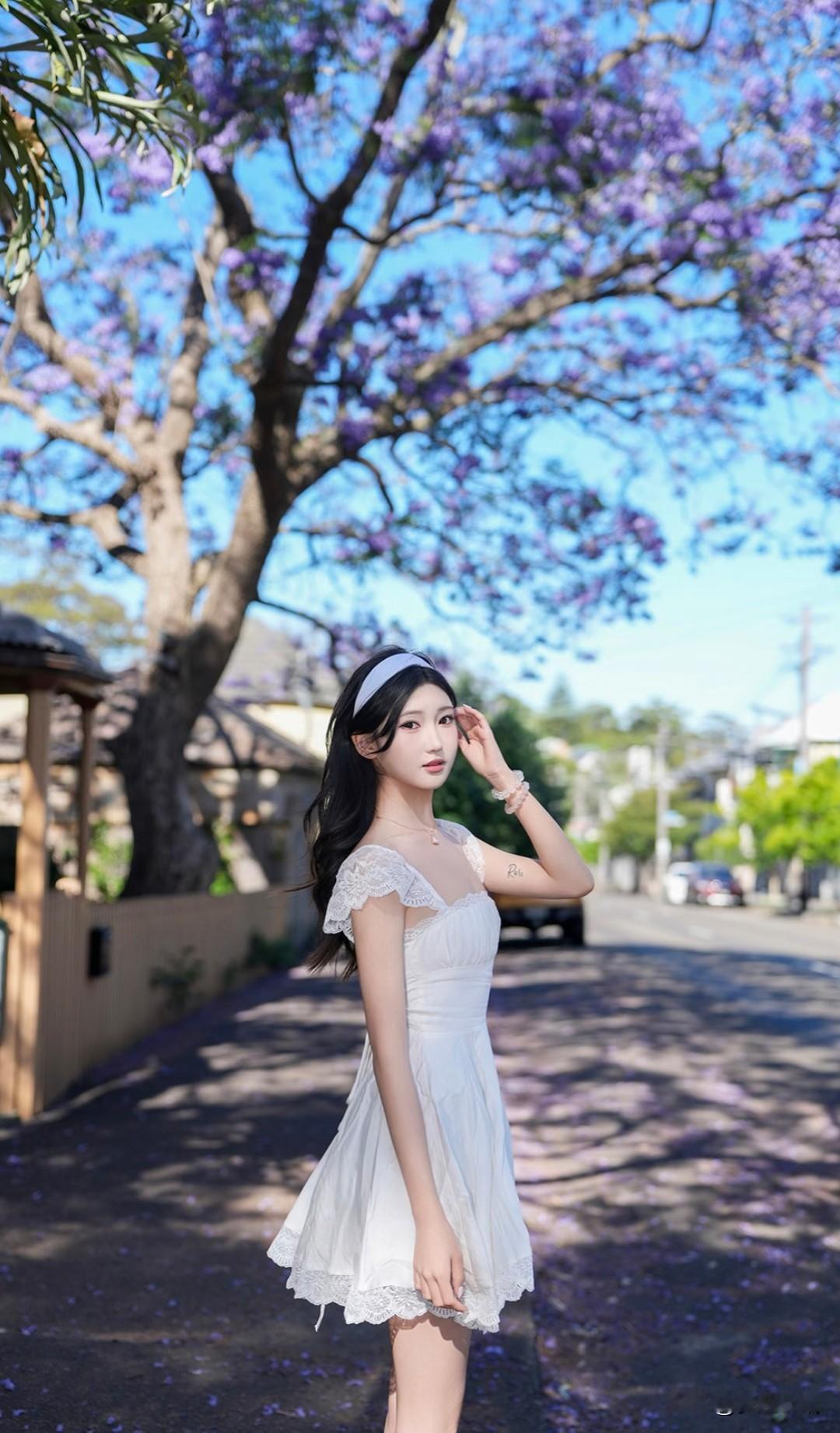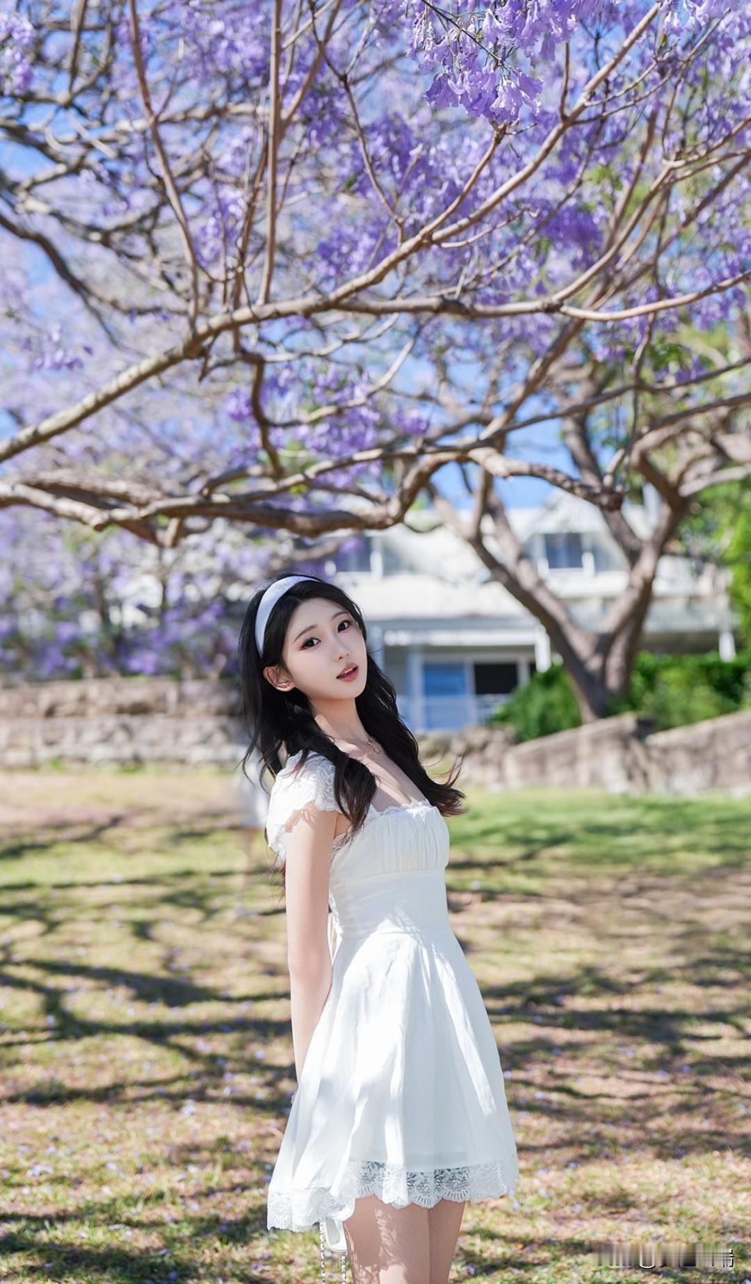 梦幻紫色花海中的优雅少女,白色蕾丝裙摆飘逸动人。
