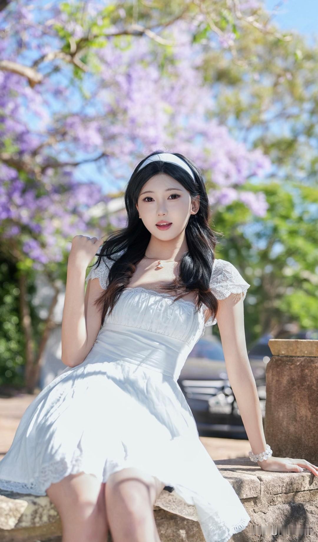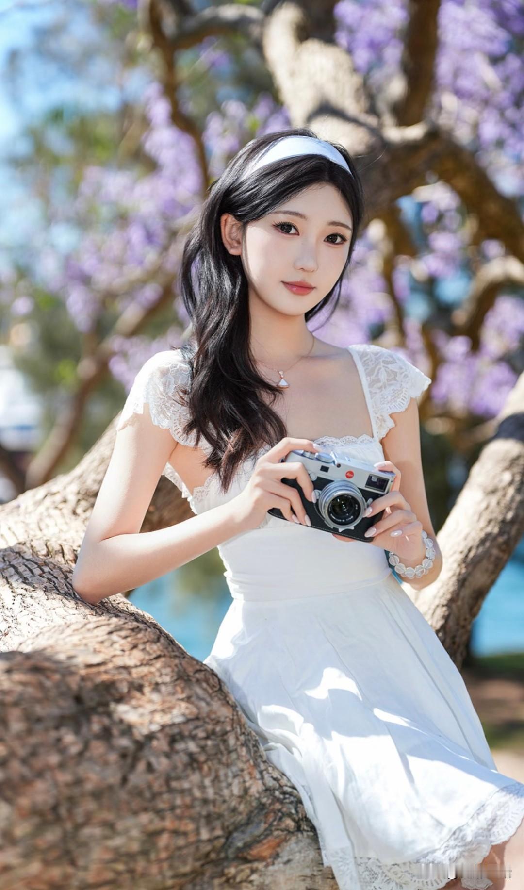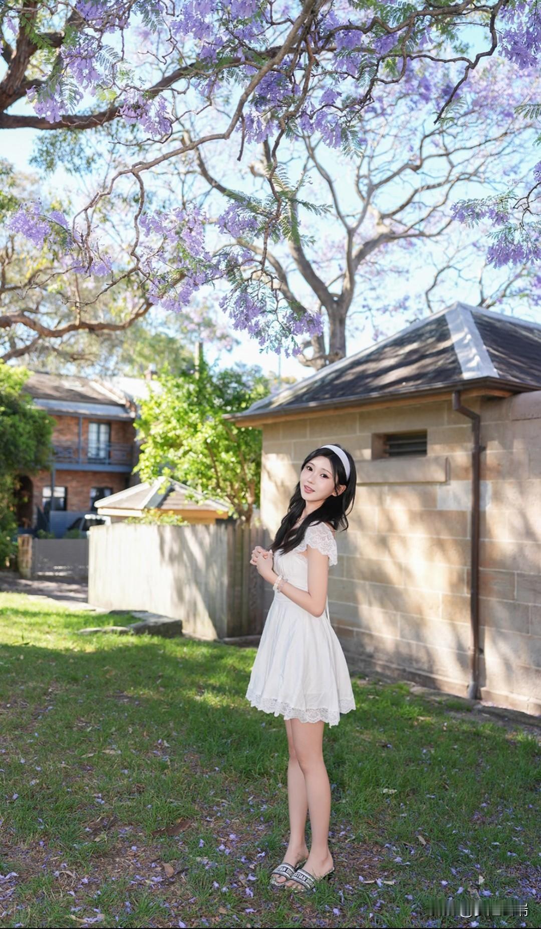 梦幻紫色花海中的优雅少女,白色蕾丝裙摆飘逸动人。