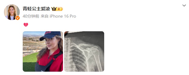 3月,她在社交平台公布了锁骨骨折的X光影像。