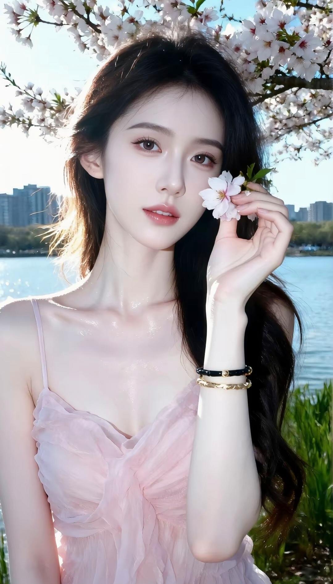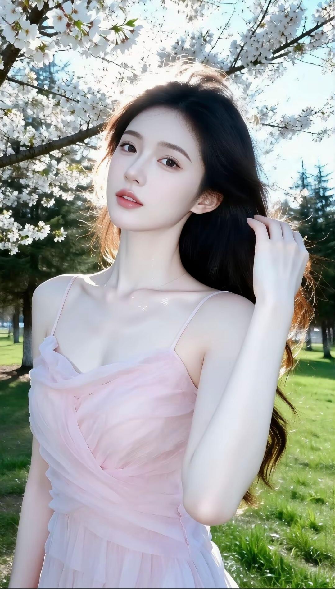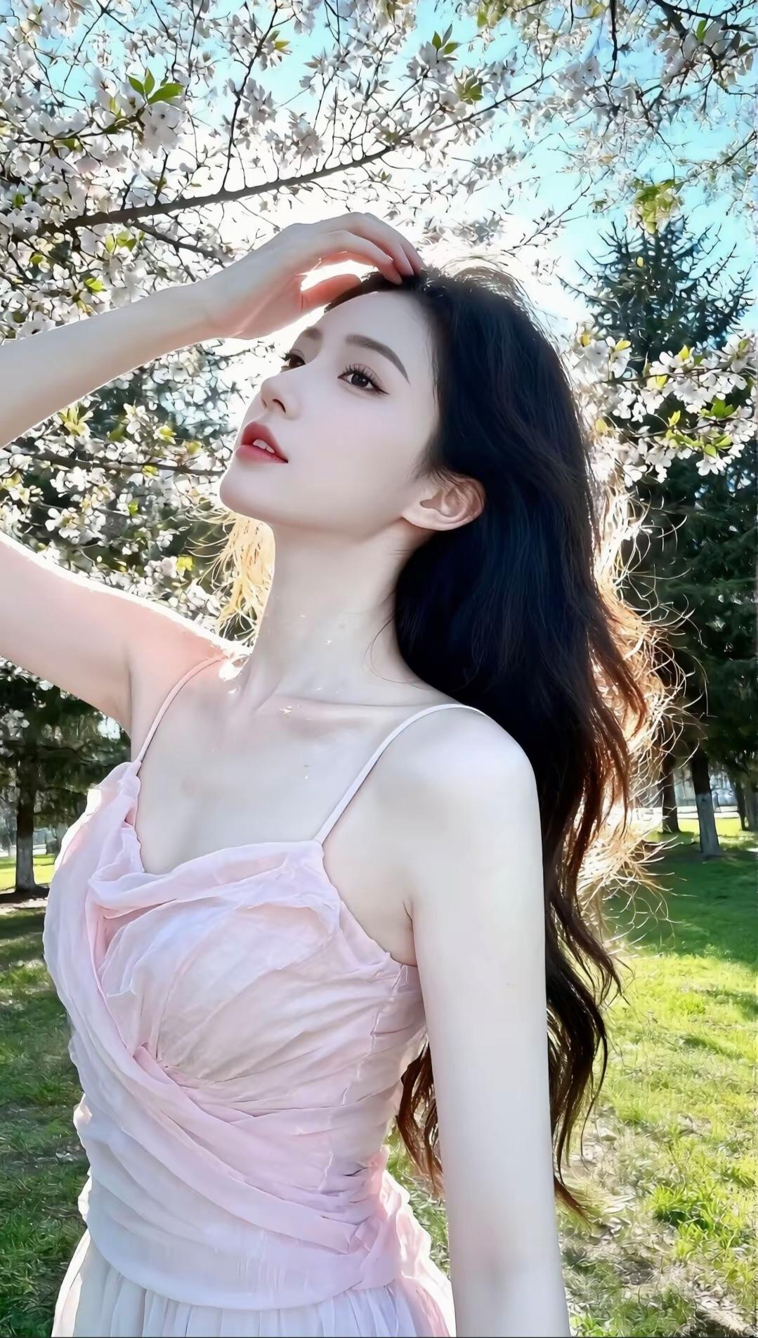 风把樱花揉碎在日光里,她抬腕时,花瓣便栖在指节。粉裙是春潮漫上来的浪,裹着午后的软暖,发梢掠过时,连风都沾了甜。 湖波接住碎金,把树影摇成晃荡的诗。她不必说话,光落在颈窝的弧度里,就成了春的注脚——是花要开,是风要软,是所有恰好的温柔,都在这一瞬落了满肩。