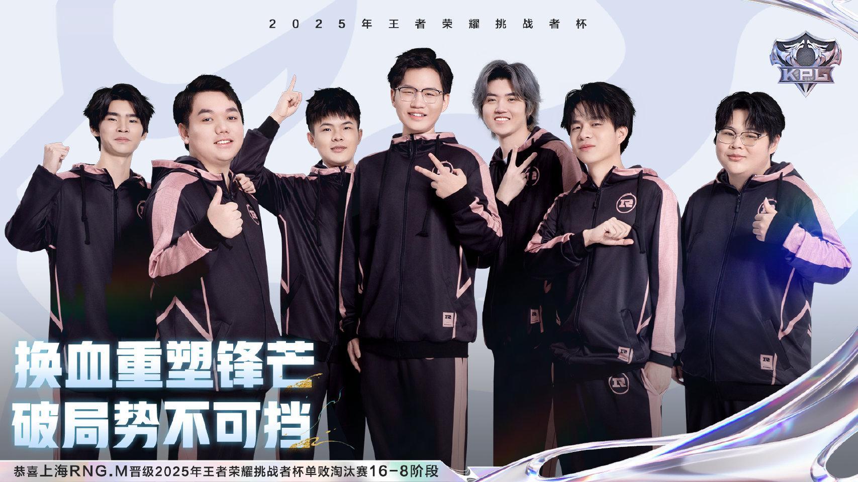 虎扑12月06日讯恭喜上海RNGM晋级2025王者荣耀挑战者杯单败淘汰赛16-8阶段。