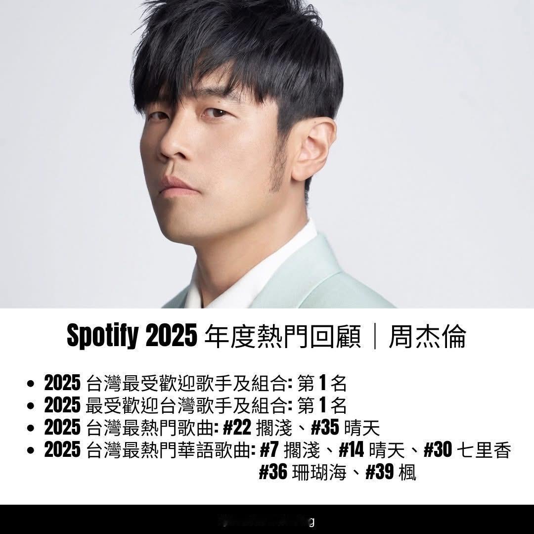 2025 Spotify 台湾年度榜单!周杰伦连续7年蝉联冠军!