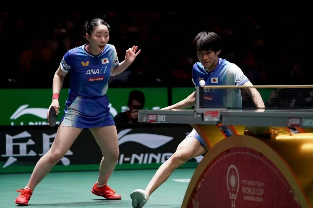 混团世界杯丨中国8-5战胜日本豪取6连胜,排名榜首!! 2025年成都混合团体世界杯 第二阶段循环赛今天将结束,中国与日本队的比赛被认为是决赛的提前上演!经过五盘精彩的战斗,中国队以总比分8比6胜出,排名第二阶段循环赛榜首! 首盘混双,孙颖莎/王楚钦3-0战胜张本美和/户上隼辅;第二盘女单,王曼昱2-1战胜伊藤美诚;双方前两局异常胶着,都在10平以上分胜负,各赢一局,第三局王曼昱11-2速胜!第三盘男单,梁靖崑1-2不敌松岛辉空,这场男单松岛辉空进攻相当猛,整场压着梁靖崑在打,好在第三局7平之后梁靖崑通过节奏变化拿下一局! 三盘过后,日本将总比分追至3比6! 第四盘,王楚钦/林诗栋以1-2不敌日本户上隼辅/筱塚大登!但国乒总比分7-5领先! 第五盘女双,国乒王曼昱/蒯曼以11-9战胜张本美和/大藤沙月为国乒拿下制胜分,中国队以总比分8比5战胜日本,豪取6连胜!排名榜首! 恭喜国乒!