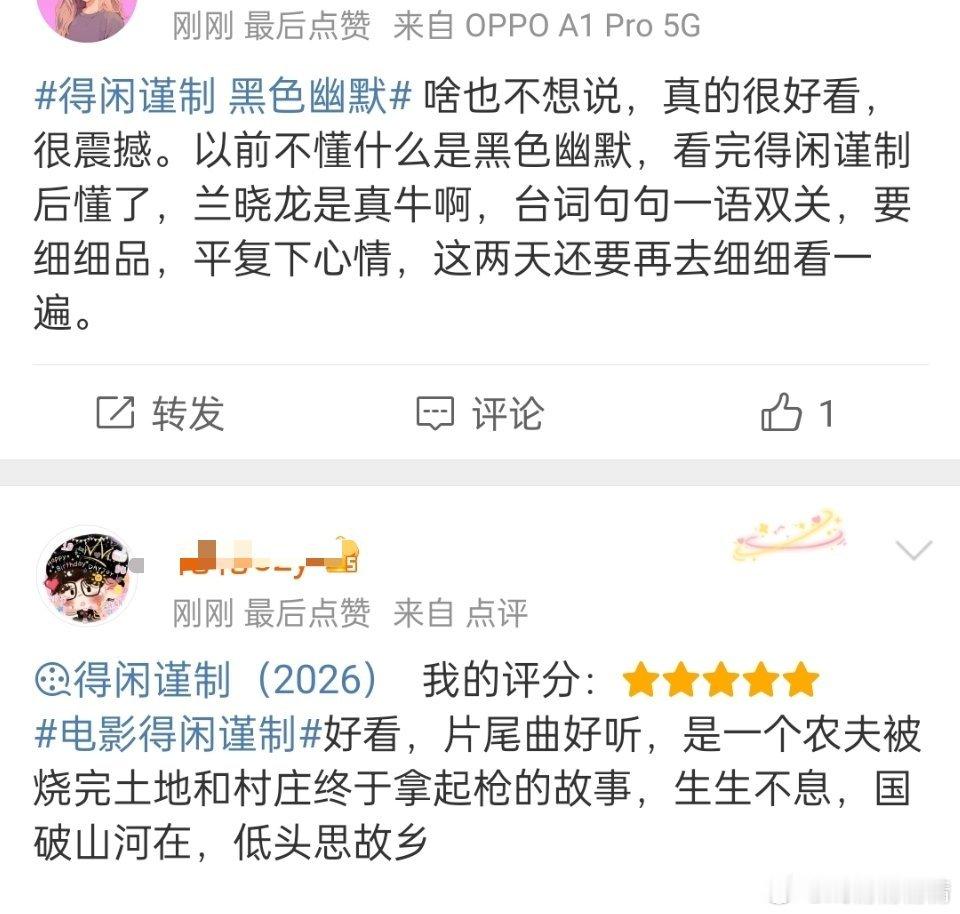 从提前点映的影评来看《得闲谨制》的口碑已经爆开了,影评人和观众纷纷给出5星好评