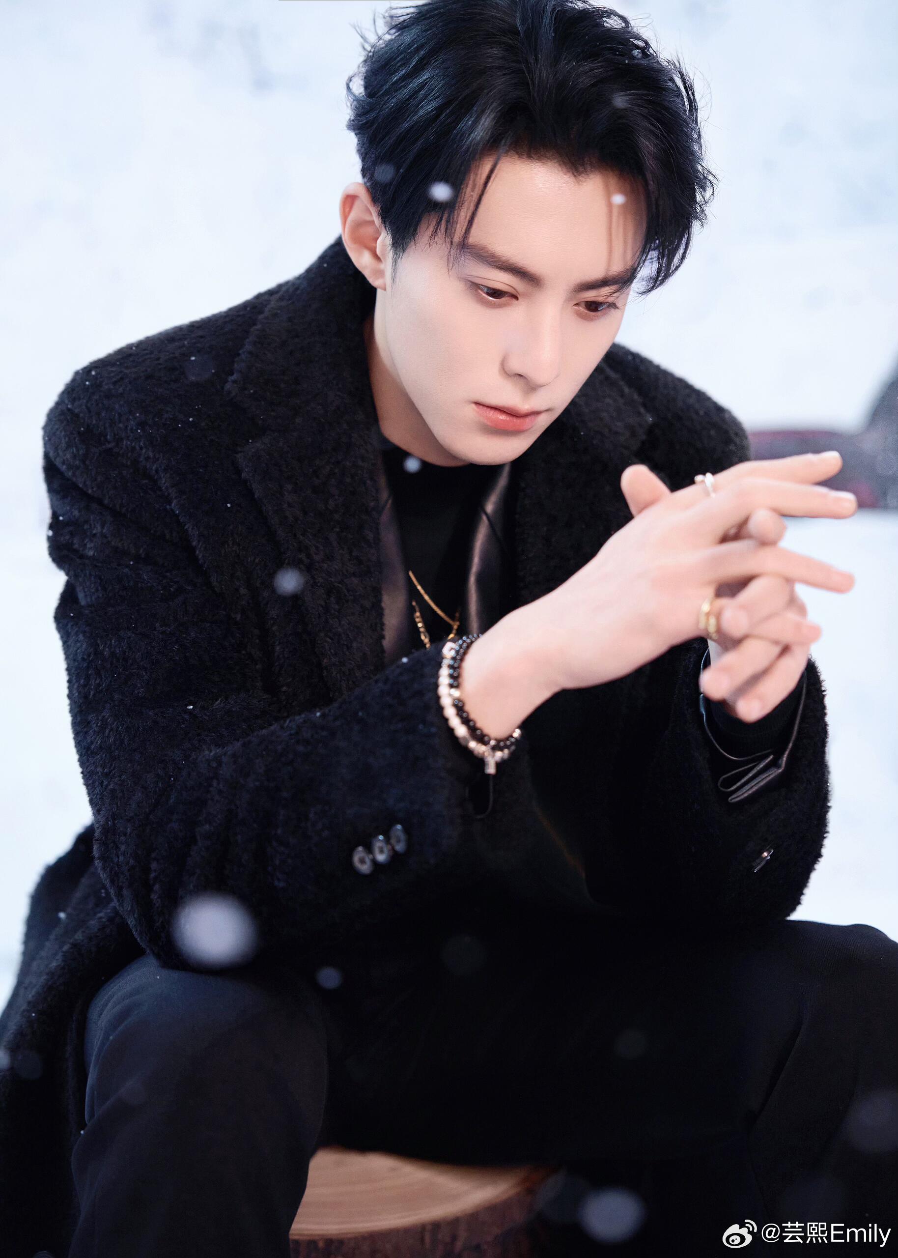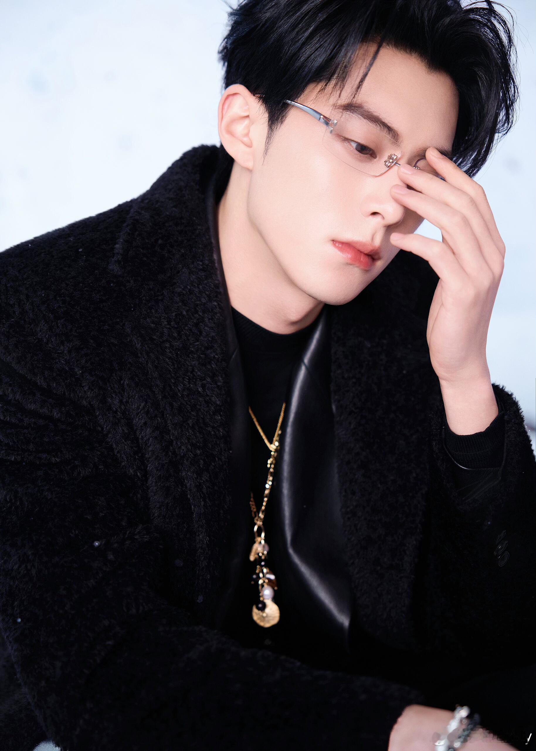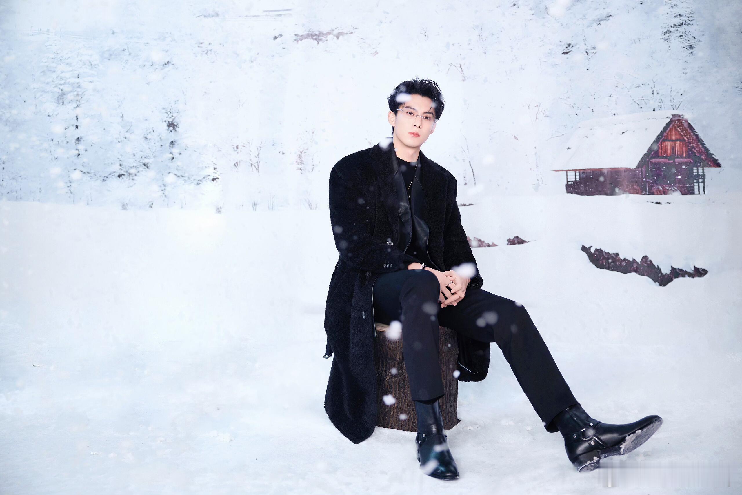 王鹤棣|你好星期六造型好绝!黑色毛绒长外套叠皮质内搭,配金丝眼镜,在初雪布景里衬出冷冽又温柔的气质,像把冬日氛围感直接穿在了身上,这波造型真的又帅又有氛围感~