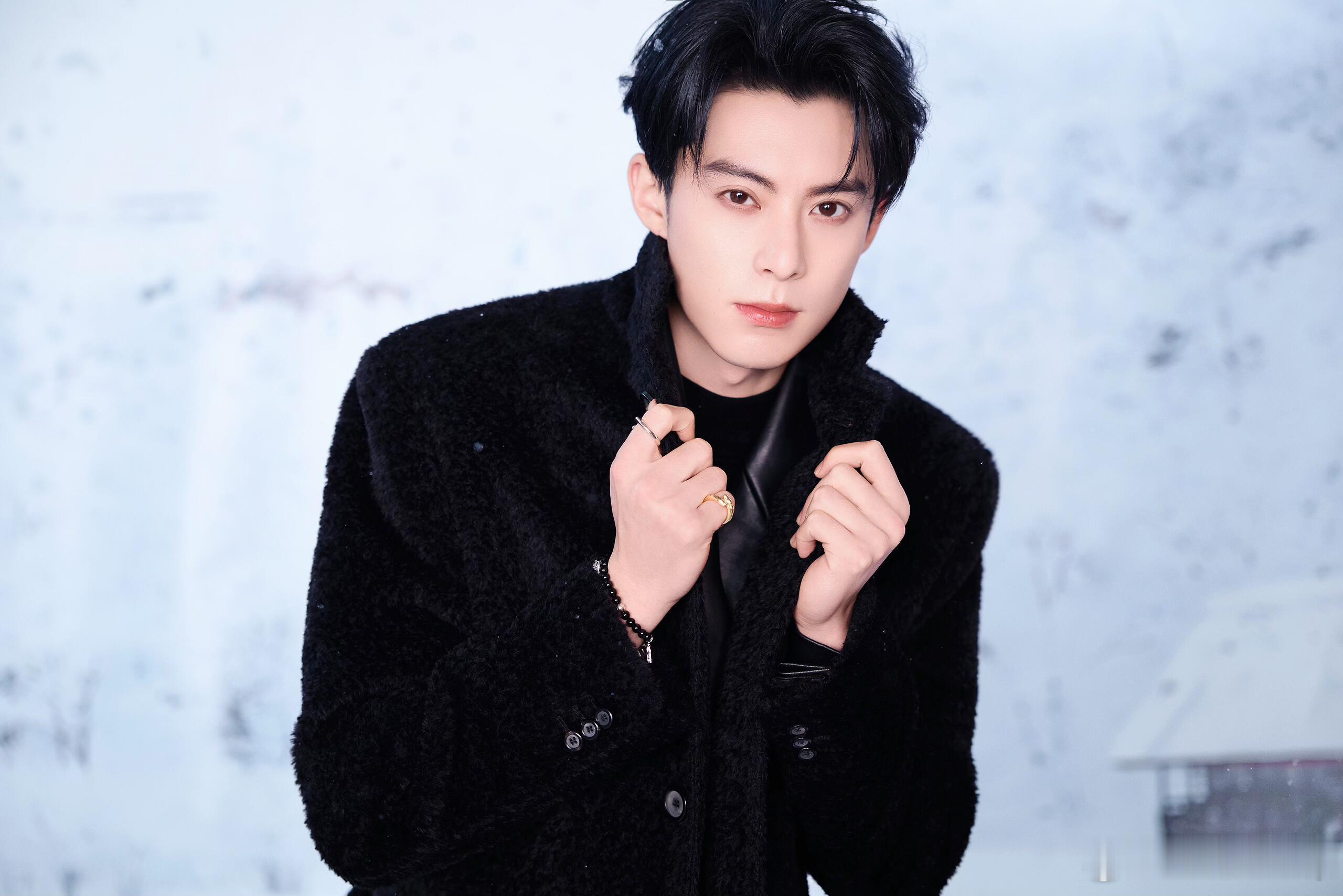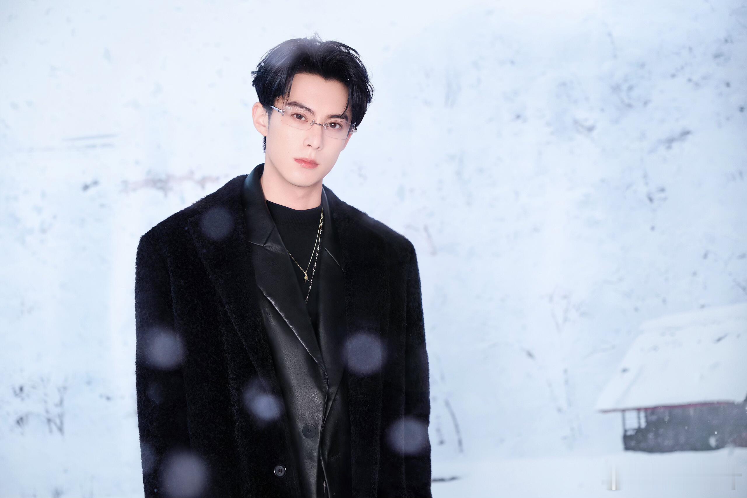 王鹤棣|你好星期六造型好绝!黑色毛绒长外套叠皮质内搭,配金丝眼镜,在初雪布景里衬