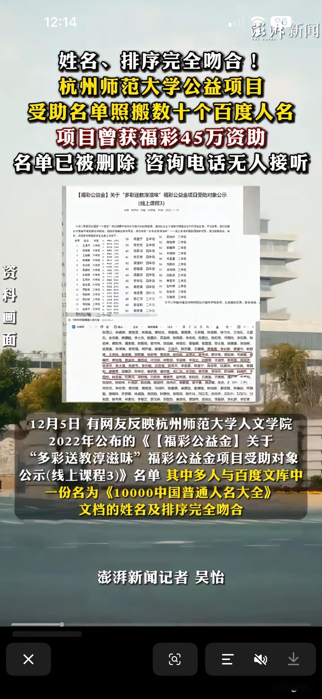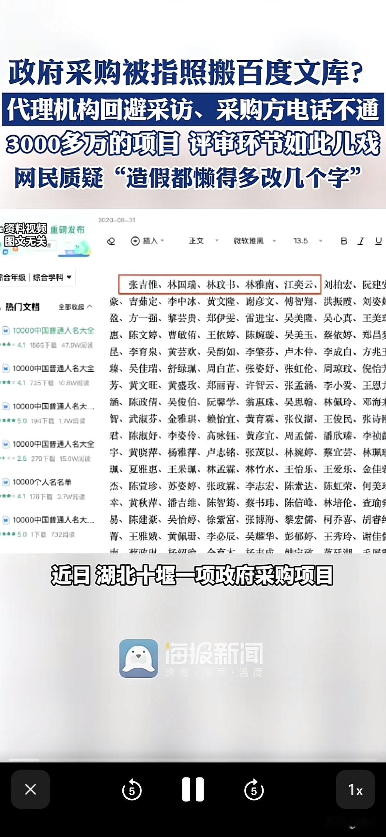 近期小编发现,政府采购中标的评审名单照搬百度文库名字。代理机构表示:都这样,小姑娘们搞得一时心急,不符合常理。 随后更多的网友扒开了这层遮羞布,各行各业充斥着虚假信息,甚者杭州师范大学公益项目也如此。 针对此事,大家怎么看?世界真的是一个巨大的草台班子。