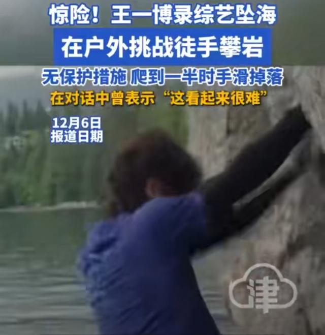 12月6日消息,在新一季的户外综艺中,艺人王一博无保护措施徒手攀岩,爬至一半手滑掉入海中。