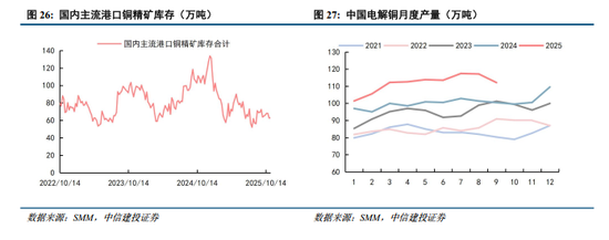 2025年全球铜矿减量,精炼铜增长建立在大量消耗库存之上。2025年全球铜矿减量,现货TC历史性的负数,但是,精炼铜的产量却在持续新高,主要的原因是副产品价格可观,冶炼厂保持盈利的状态,大量的消耗铜精矿库存。