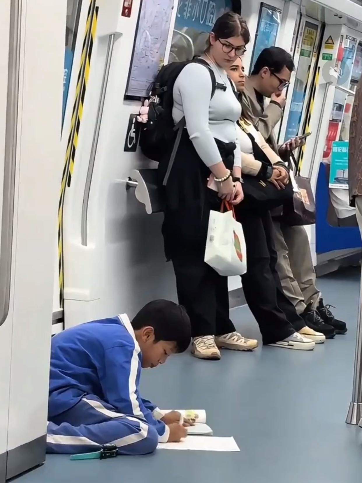 这应该是让日吹沉默恨国党激动的画面: 小学生独自坐车还能自主学习,日吹没法黑 小学生坐个车还要趴地上写作业,恨国党立马就能把教育的问题拿出来,说学习占用了全部时间、这是儿童的苦难…… 养过孩子或者真正了解小学教育的大概一眼就能看明白,这不是玩太多忘记写作业在补,就是想提前写完好多出时间玩,卷归卷忙归忙,地铁写作业和教育问题不沾边。有趣的是国外很多人看到这种画面反倒是感叹中国崛起不是靠运气靠的是努力。