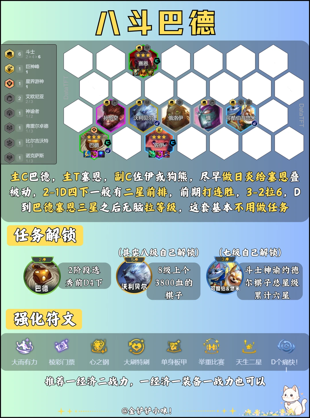 🔴金铲铲S16飞八斗巴德,仅体验服适用,具体情况看版本更新怎么说,小咪会做一期阵容推荐