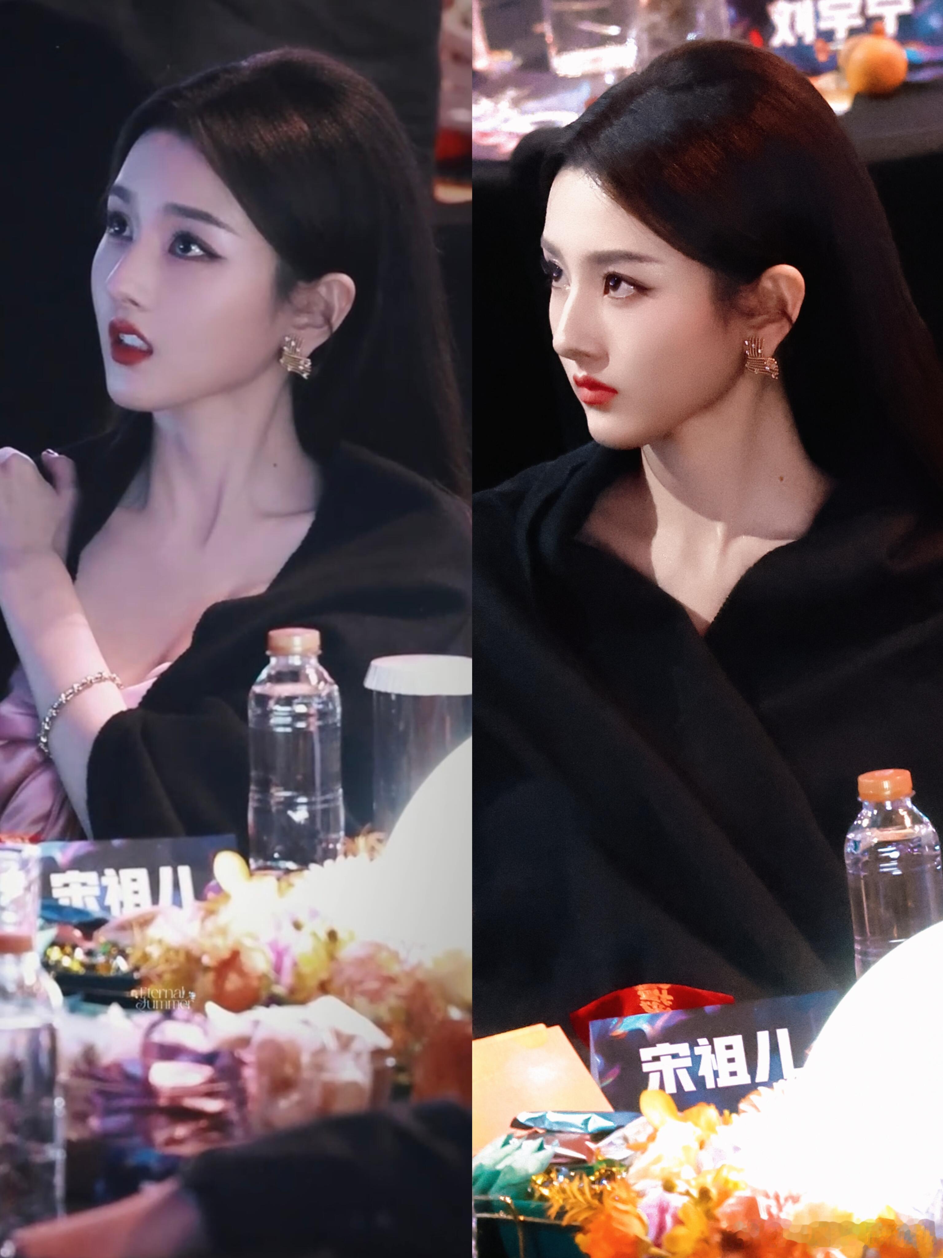 白鹿一天三套造型尖叫之夜白鹿造型杀疯,RamiAlAli黑裙复刻港风,化身暗