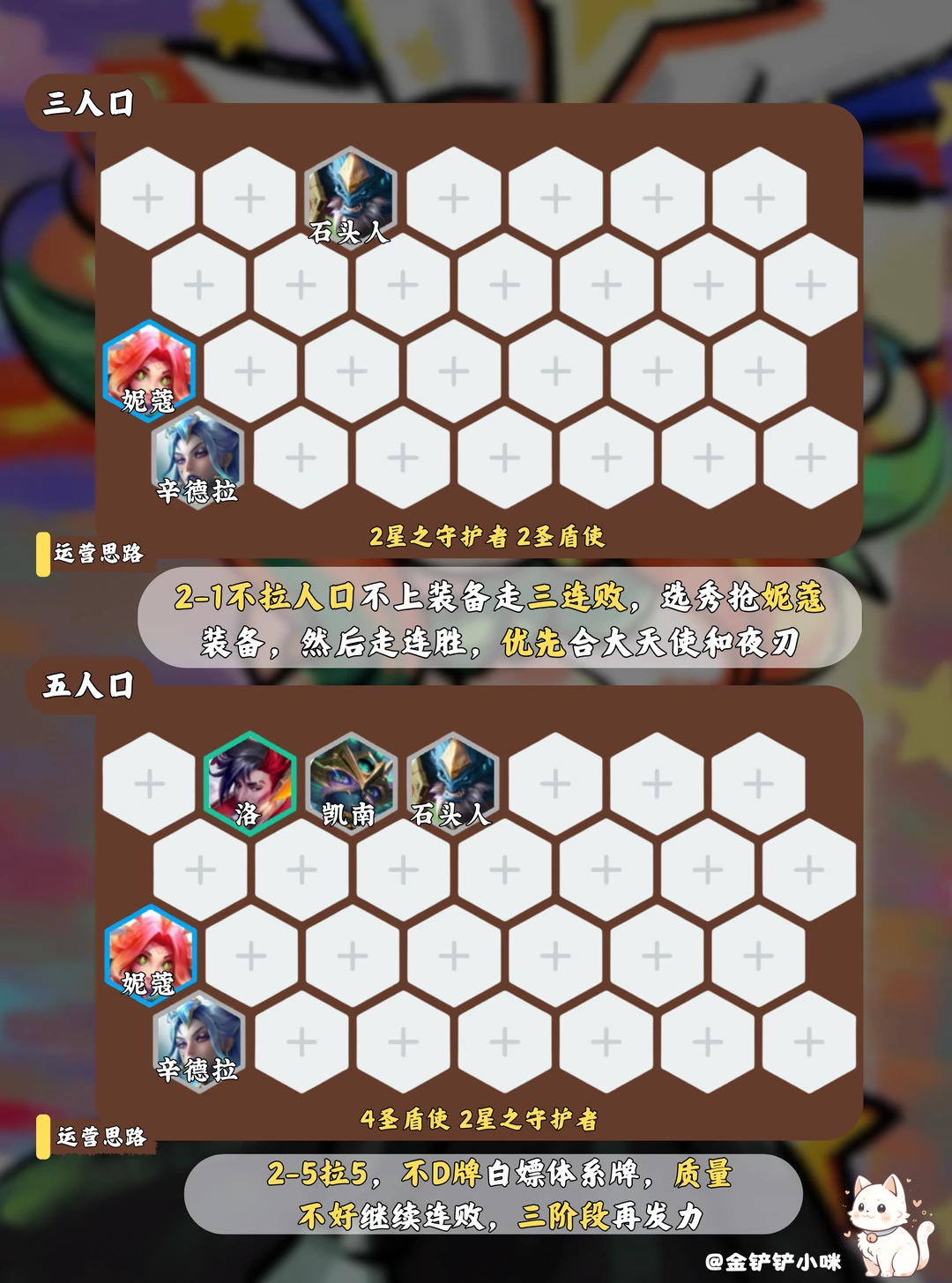 2️⃣阶段2-1不拉等级,走连败选秀抢妮蔻装备,2-5拉5,质量不好继续连败