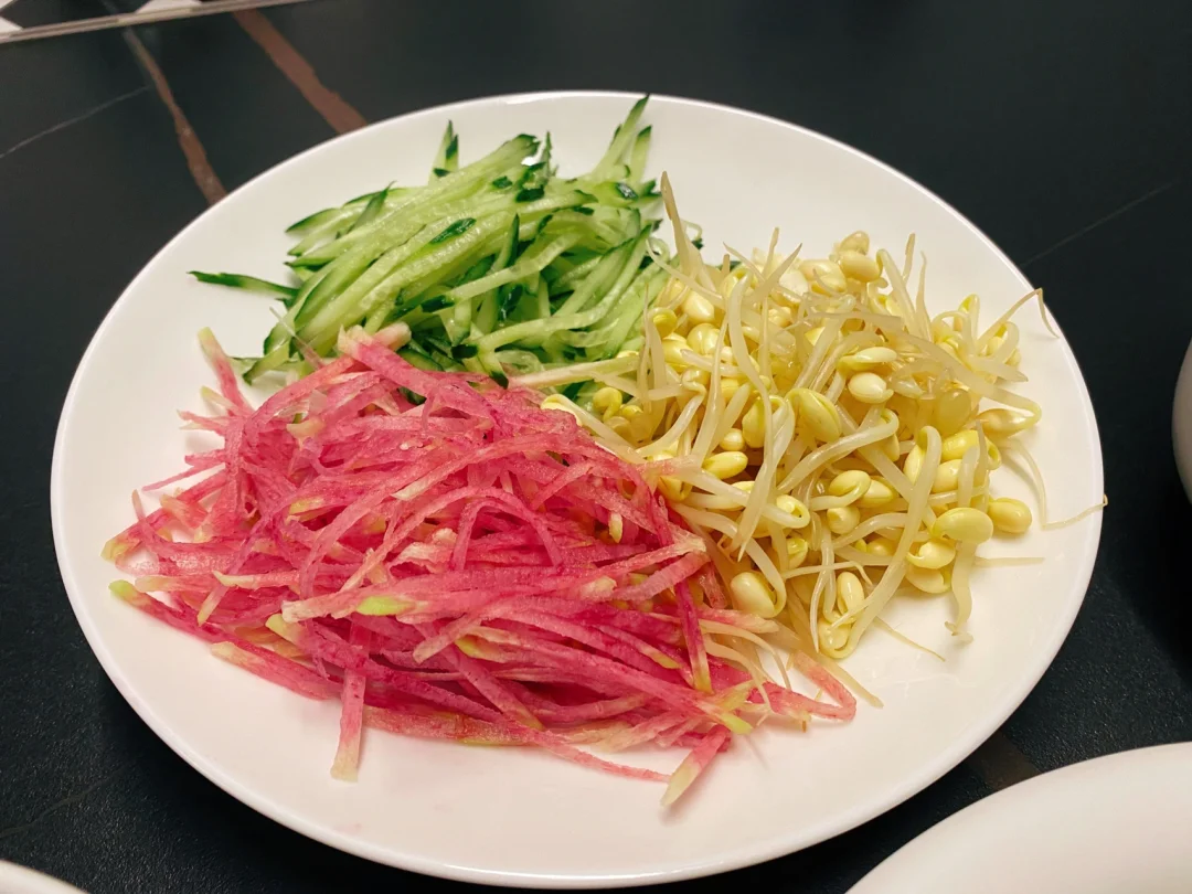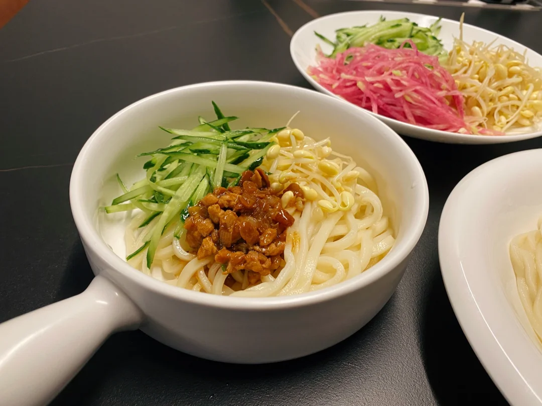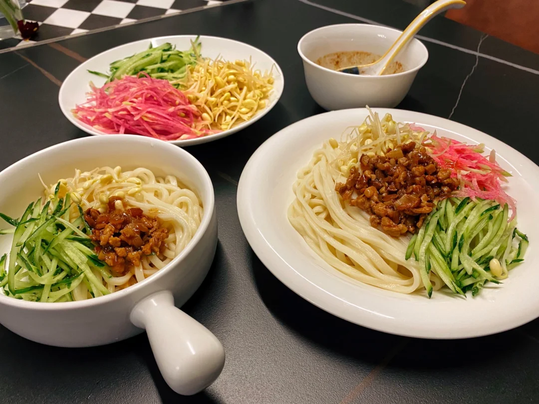 我自己其实是面食爱好者,从小喜欢的主食就是面食,各种面条~ 今天做了好久没吃的老北京炸酱面 老北京炸酱面的正宗菜码要有心里美萝卜丝,黄瓜丝,黄豆芽等,肉酱应该配的是甜面酱,但是我家只有黄豆酱,最后做出来也很好吃😋 我自己最少吃一盘[偷笑R]