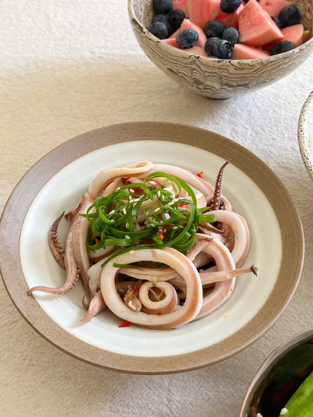 新鲜的鱿鱼就适合白灼一下 鲜甜又爽脆