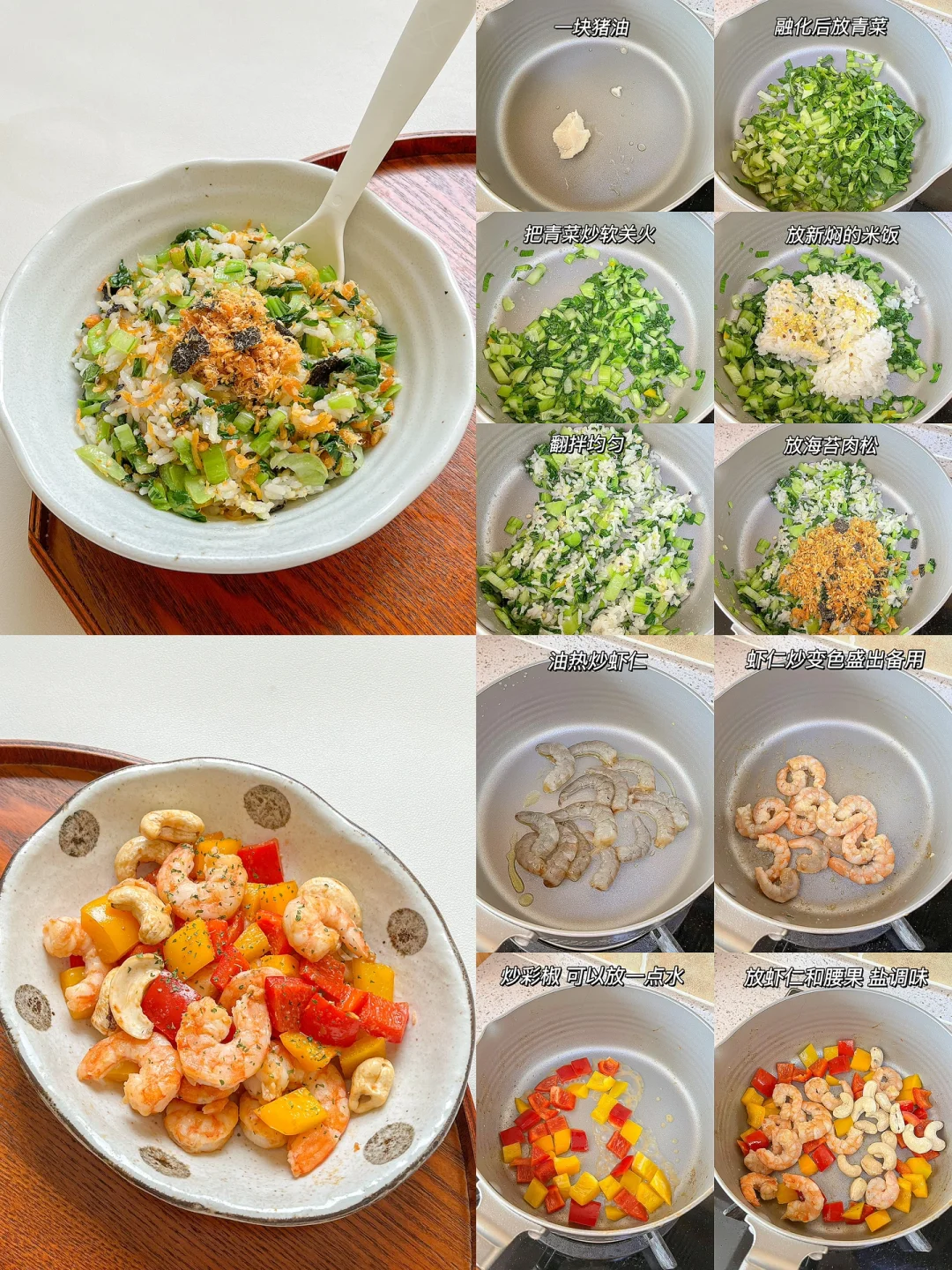 我愿意在我有限的午餐里多摄入一些食材 从五一以后 我就一直在吃杂粮米饭 就四种食材:大米、小米、小碴子、三色藜麦 🌱我总结了几条吃杂粮饭的好处: ¹杂粮消化速度慢,吃了不易发胖 ²杂粮餐后血糖上升慢 ³杂粮含膳食纤维丰富,能帮助预防便秘 ⁴杂粮含抗性淀粉多,有利于改善肠道菌群 杂粮饭跟着简单的蔬菜一起做成菜饭 好吃低卡又健康 减脂期的伙伴可以试一试 🌱无米蔬菜炒饭 🌱油菜香菇菜饭 🌱黄瓜炒饭 🌱菠菜玉米饭 🌱菜心肉松饭 🌱虾仁菜心饭