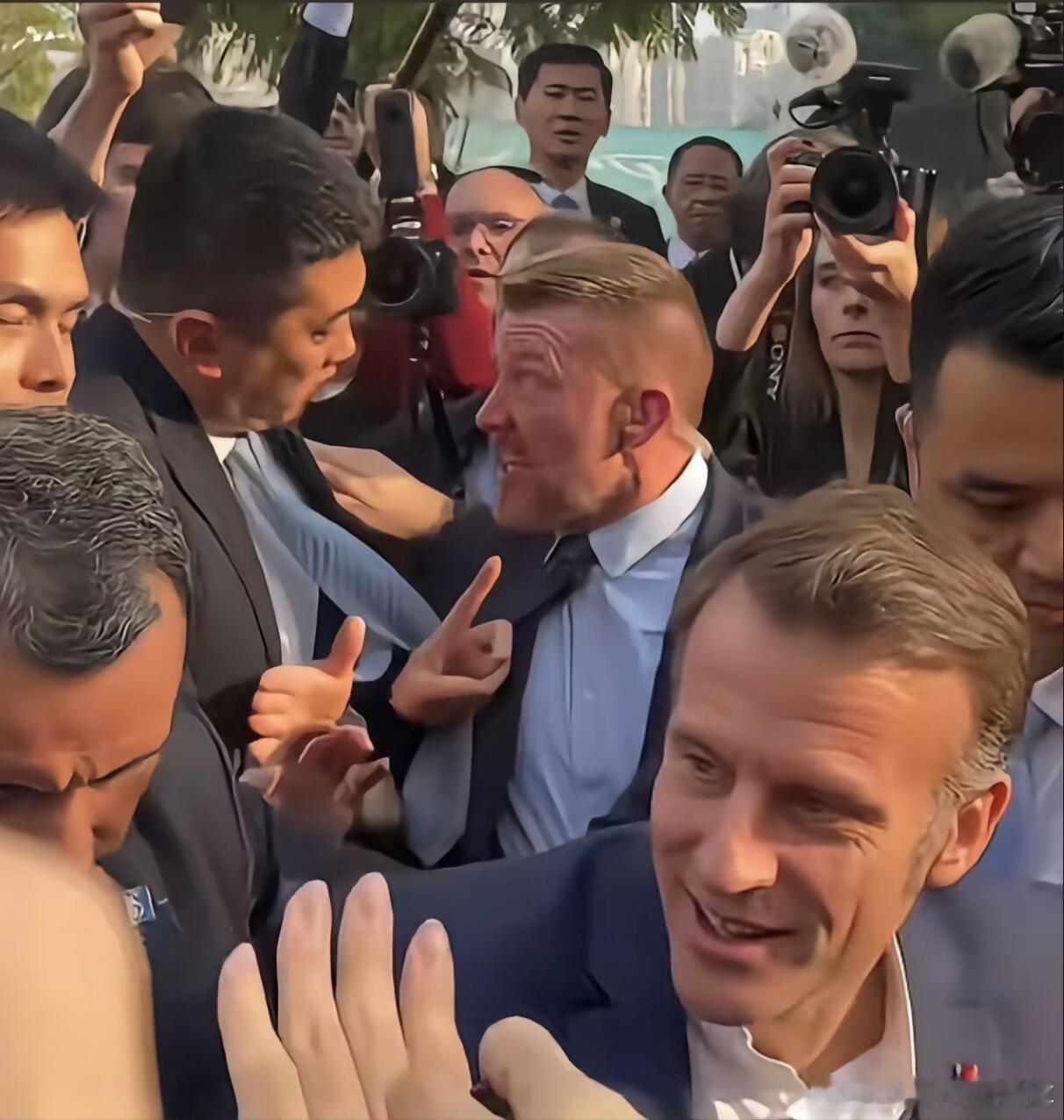 笑不活了!马克龙访华3个名场面爆火,比段子还上头😂网传中法保镖“踩脚
