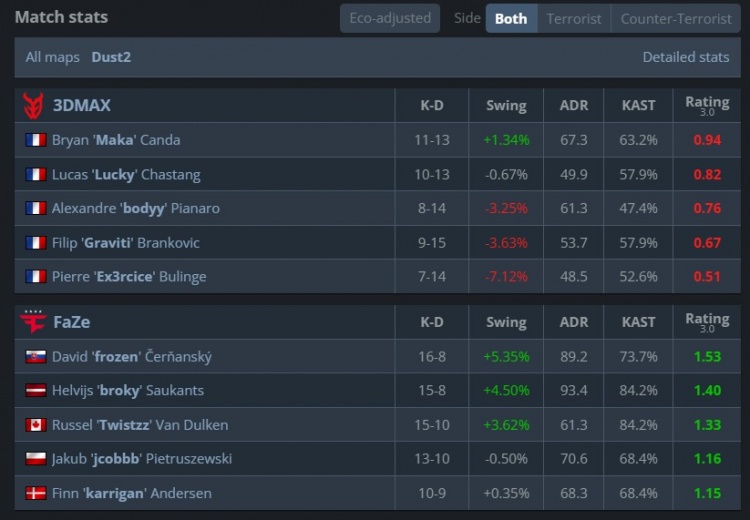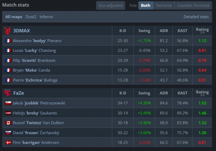 FaZe:karrigan、jcobbb、frozen、broky、Twistzz