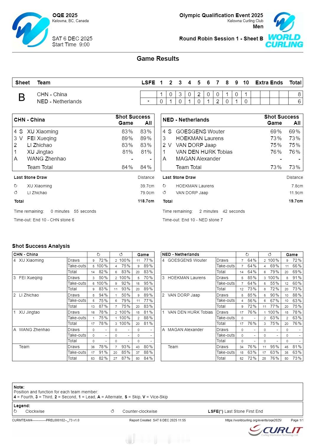 【冰壶冬奥落选赛中国男队8-6力克荷兰 取得开门红】国际体坛战报速递 12月6日加拿大基洛纳,冰壶冬奥落选赛揭幕。在首日比赛中,中国男队凭借第三局险中取得的3分,以8-6力克荷兰,取得开门红。北京时间7日11时,中国队将迎战美国。