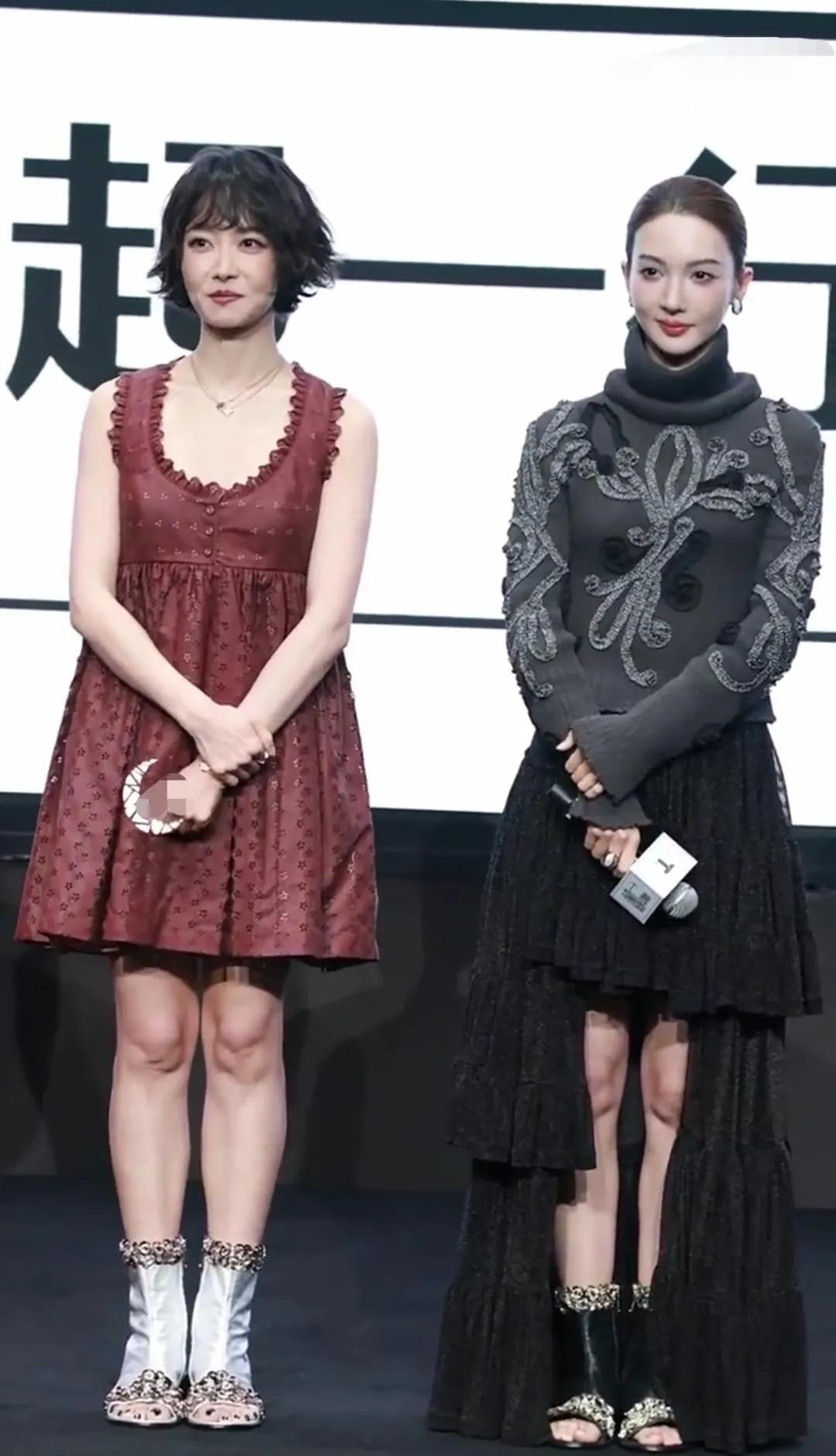 宋茜是得罪造型师了吗?这装扮老了何止20岁! 讲真,一开始真的没认出这是宋茜,笃定的认为她是白百合。当然,这也不能怪我,图片来看,不论是样貌还是身材,跟白百合几乎一模一样。其实对于40多岁,有两个孩子的白百合来说,这状态还是不错的。 但是对于30多岁,且还是黄花大闺女的宋茜来说,实在太过于老成。鞋子,衣服,发型,妆容都是如此,难看的一批。有一说一,这几件看着非但廉价,还显得老土。 尤其是衣服和发型,衣服看着很有年代感,像上世纪的产物。发型也好不了哪去,典型四五十岁妇女标志的发型。实话实说,看了无数遍,我还是能从宋茜身上看到白百合的影子。 其实身旁的金晨也好不了哪去,厚厚的毛衣,配上黑色的裙子,这样的搭配实在难言好看。二人一个穿着保暖,一个穿着清凉,反差非常差。不知道是在过夏天,还是冬天呢? 两人稍微相同的地方就是鞋子了,应该属于一个品牌,只是款式略微不同。话说两人的这双鞋子也不咋地,它让我想起了老版《封神榜》里的穿搭。看宋茜的表情,二人穿着同款的鞋子,还是有点小尴尬的。 不过虽然金晨的造型不忍直视,但架不住颜值高,不看身体,只看样貌,漂亮,有气质。 回到宋茜,宋茜的这身装扮实在是太失败了,缺点展露无遗,年龄上老了何止20岁。毫无疑问,宋茜做的第一件事就是换掉自己的造型师。