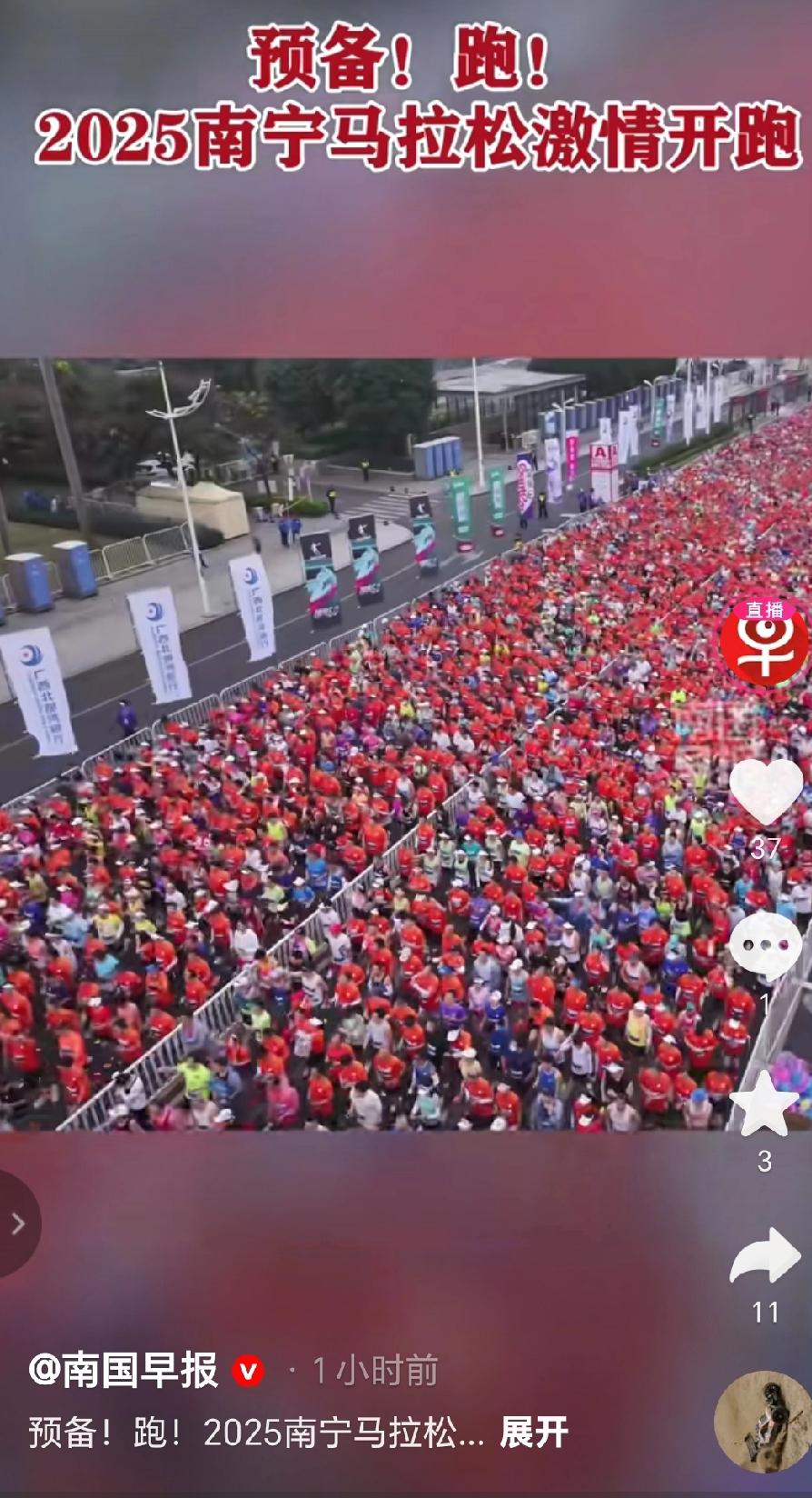 2025年12月7日早晨,南宁马拉松在广西南宁民族广场鸣枪开赛。视频展现了起点处