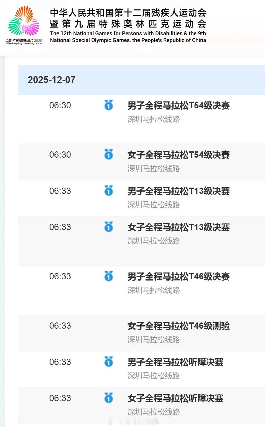 两场马拉松在深圳燃情开跑今天的2025深圳马拉松路线也是残特奥会的各马拉松比赛路线,拉开了残特奥会的田径比赛帷幕。比赛中的几个代码级别分别代表:T13:符合最低视力残障标准T46:肢体残障,但不需要使用轮椅的选手。T54:需要使用轮椅的选手全国第十二届残疾人运动会暨第九届特殊奥林匹克运动会残特奥会 深圳马拉松