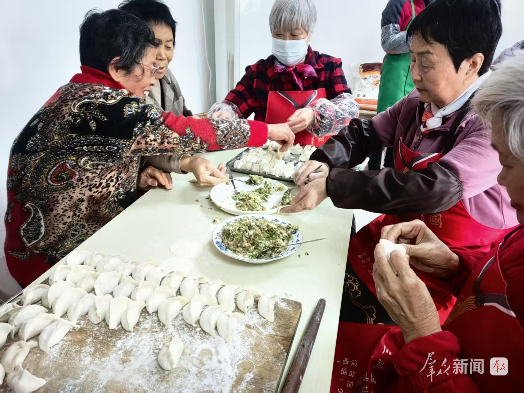 汉台区鑫源街道翠屏路社区江南小区的居民们在一起包饺子。